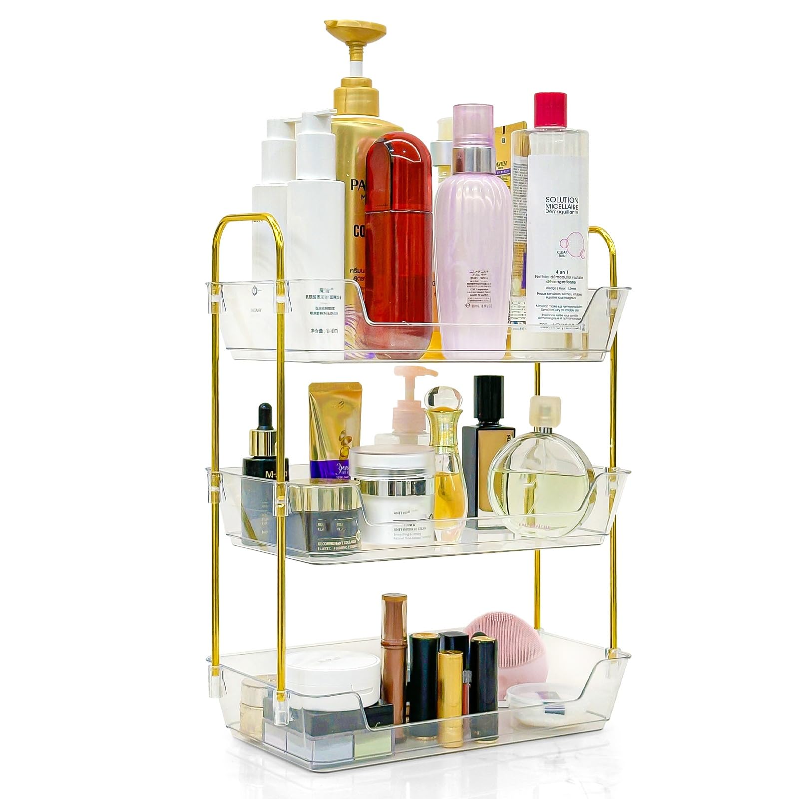 Organizador de baño de 3 niveles para encimera, bandeja de almacenamiento de maquillaje, perfume y cuidado de la piel para baño, t