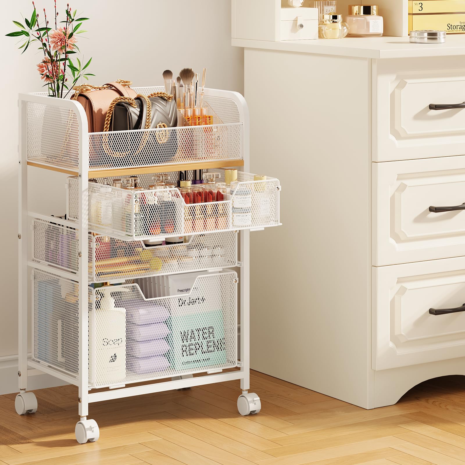 Organizador de carrito de maquillaje con 3 cajones, organizadores de cuidado de la piel con ruedas, vitrinas de cosméticos, organi
