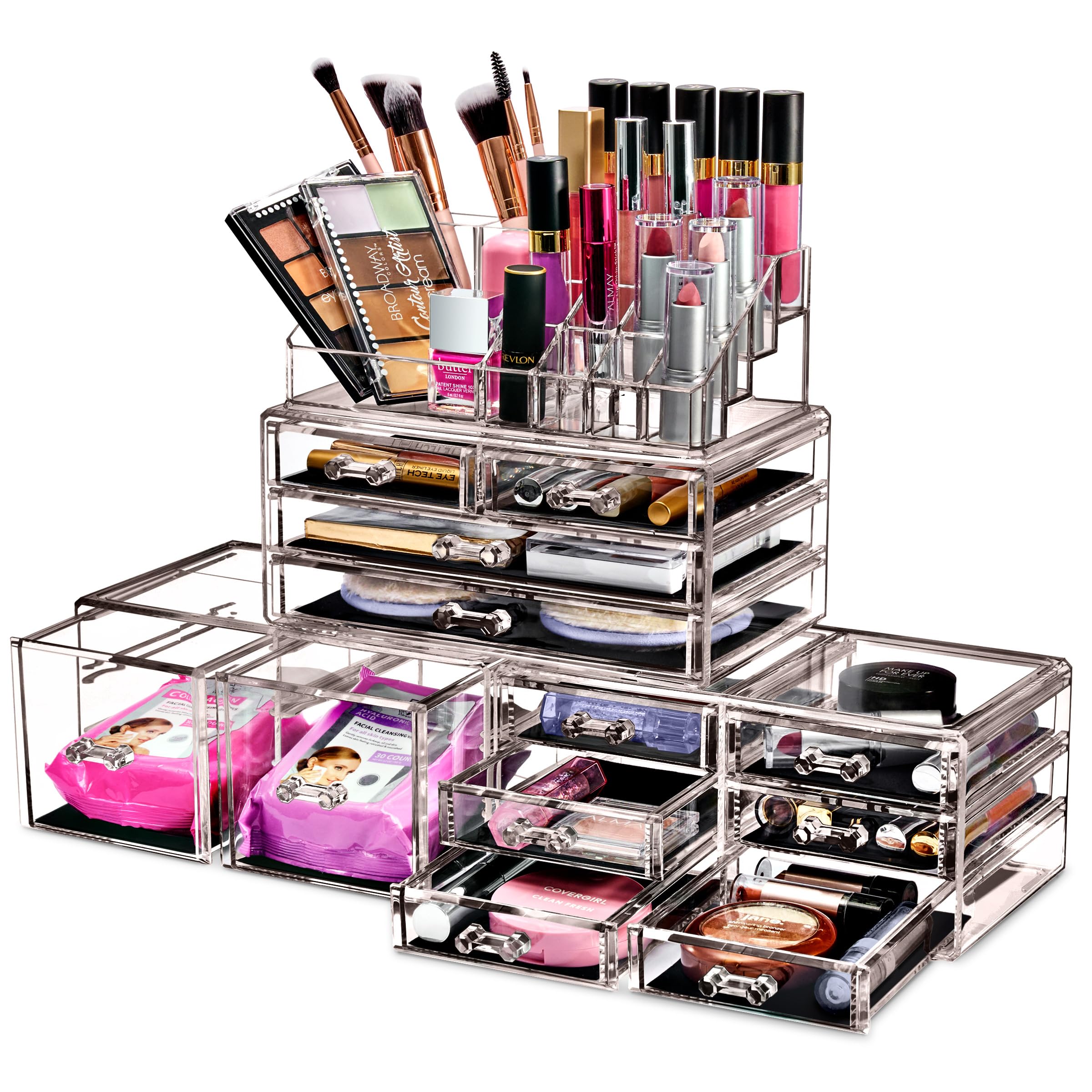 Sorbus – Estuche acrílico de almacenamiento para cosméticos, maquillaje y joyas, tamaño XL, con cajones curvados entrelazados para