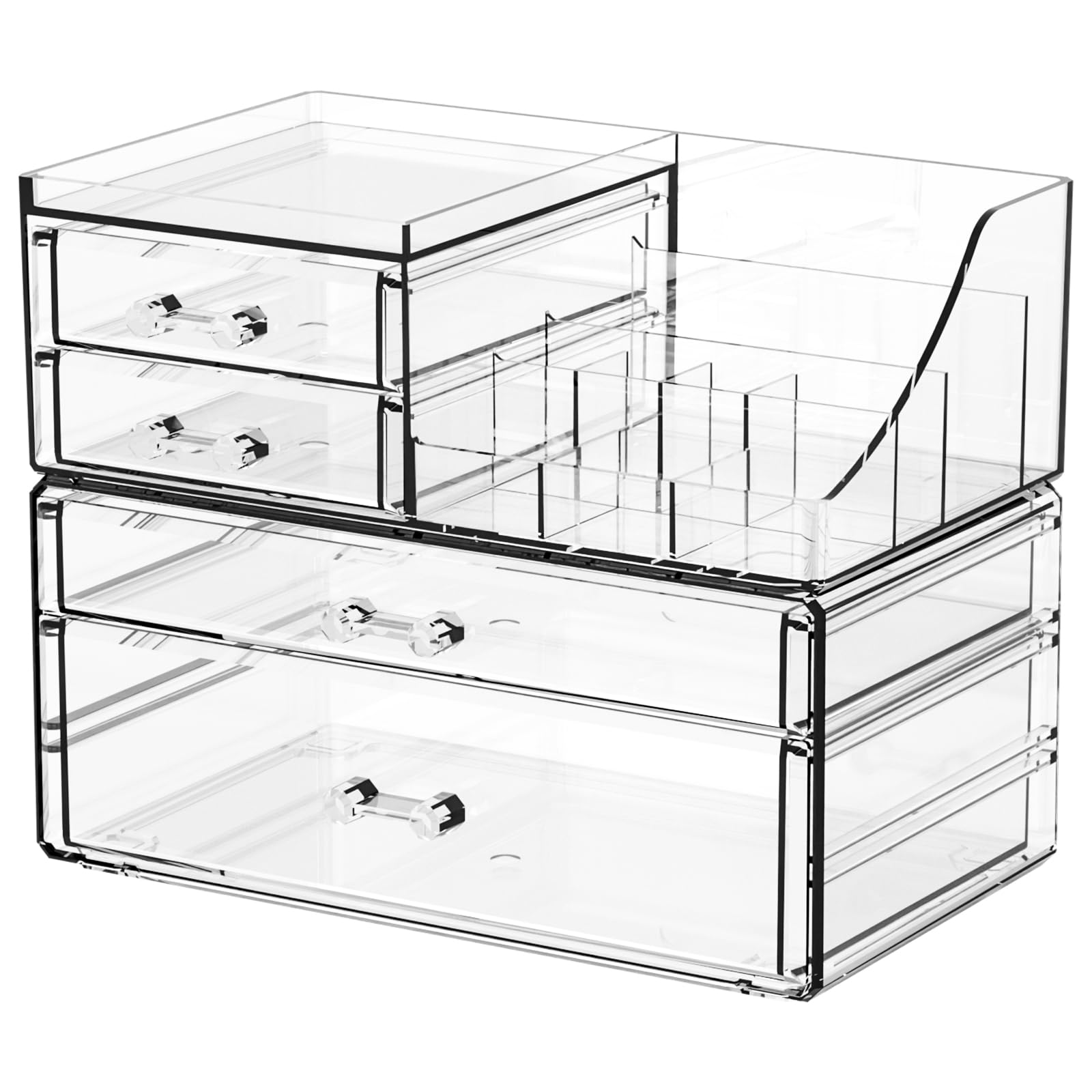 SUOXING Organizador de maquillaje acrílico transparente para tocador, baño, tocador, 4 cajones organizadores de maquillaje para mo