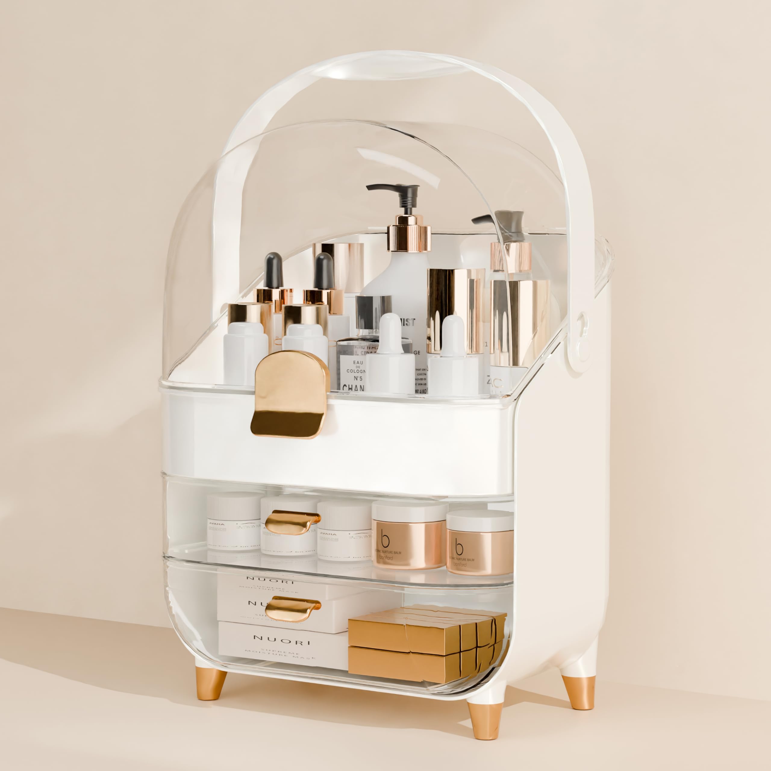 Organizador de maquillaje para encimera con tapa y cajones, soporte grande para el cuidado de la piel, para tocador, escritorio, b