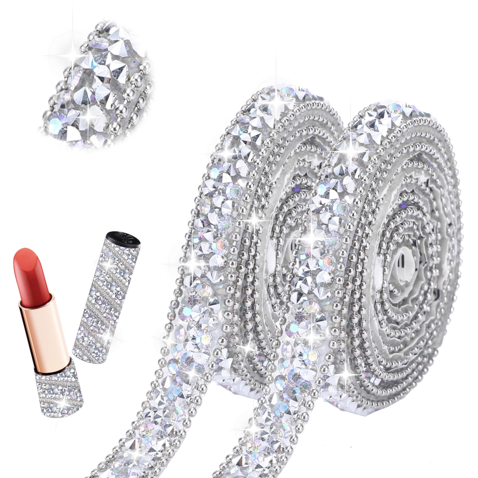 2 rollos de cintas de diamantes de imitación de 1 yarda, tiras de diamantes de imitación de vidrio autoadhesivas, calcomanías de d