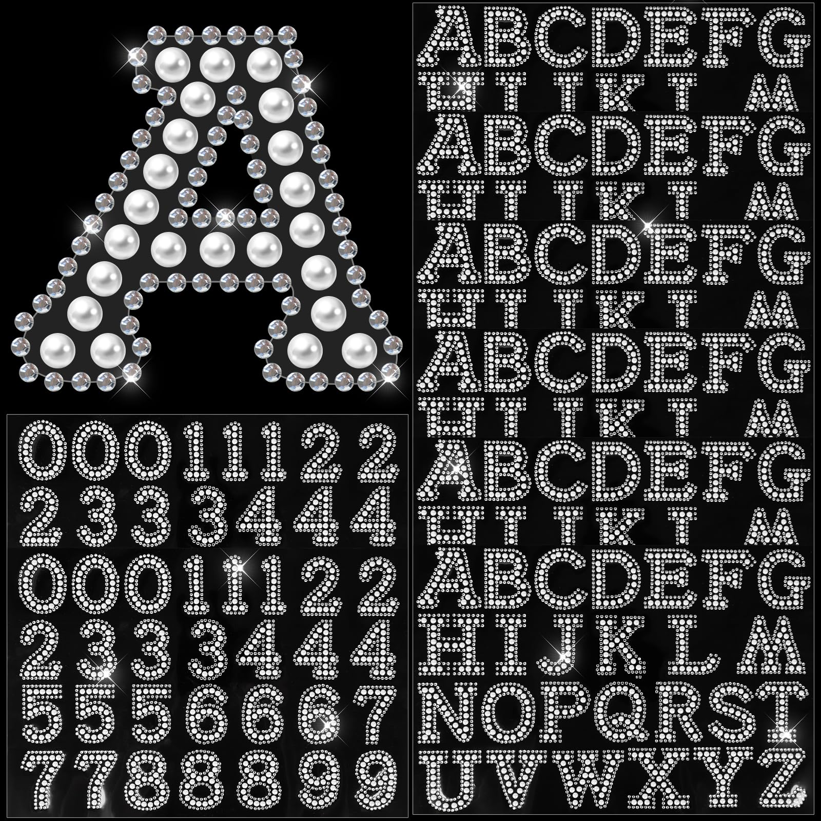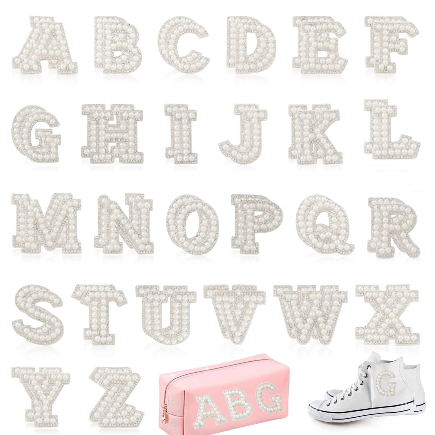 52 piezas de parches de letras de perlas, parches autoadhesivos del alfabeto A-Z con brillantina para letras con diamantes de imit