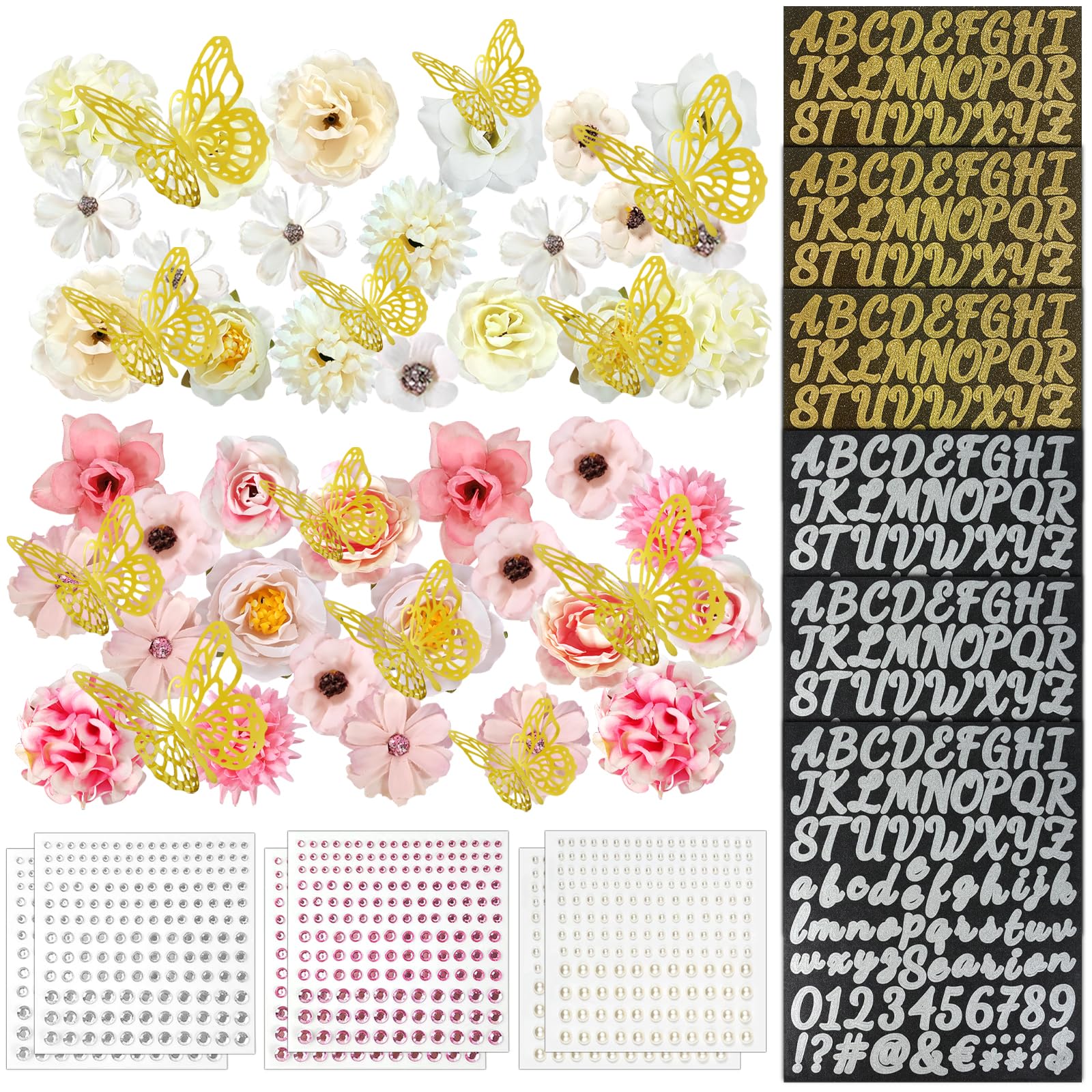 Kits de decoración de gorras de graduación que incluyen cabezas de flores sintéticas, calcomanías de mariposa 3D, diamantes de imi