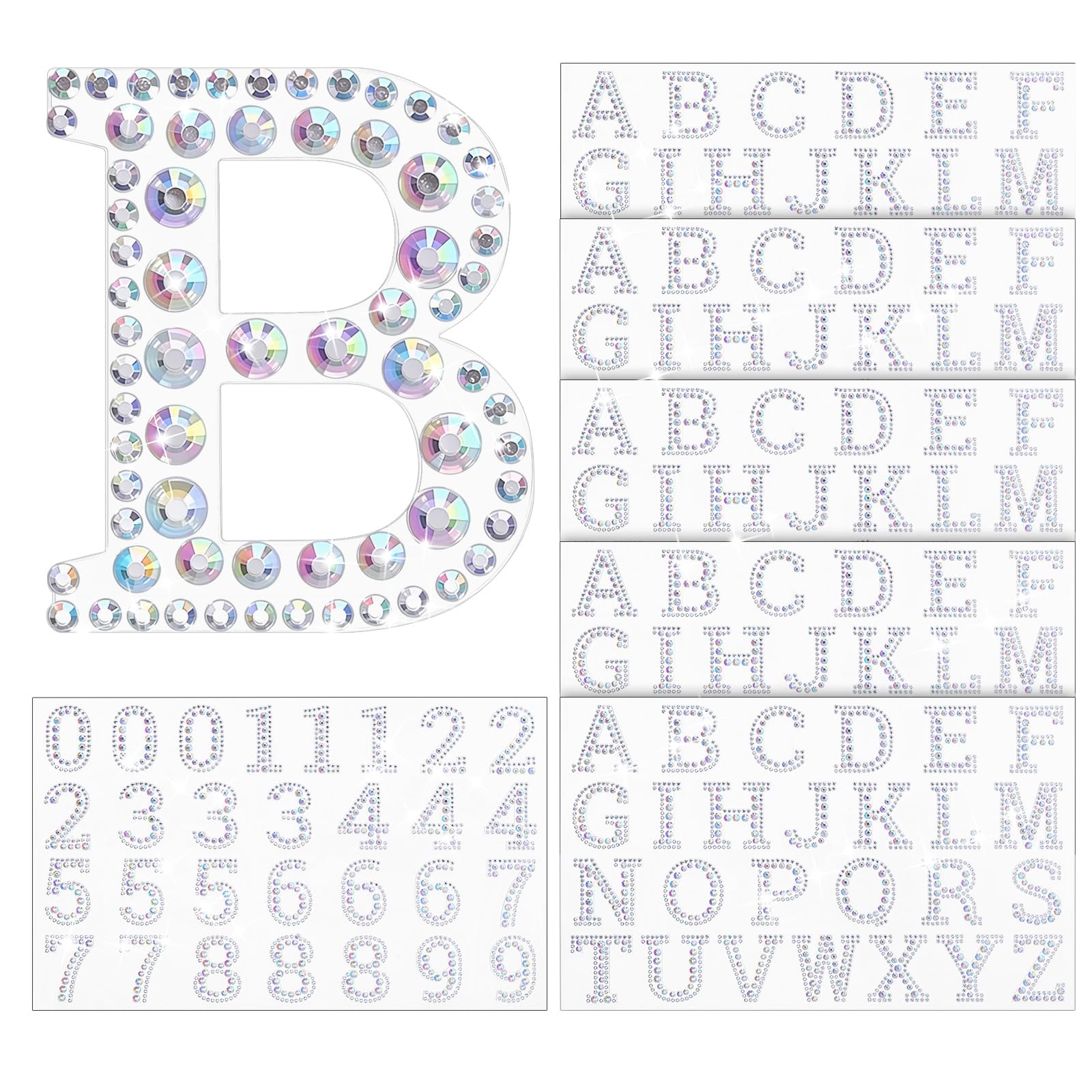 AmazingSpark 159 calcomanías holográficas del alfabeto, calcomanías de letras grandes, autoadhesivas, números de cristal, parches
