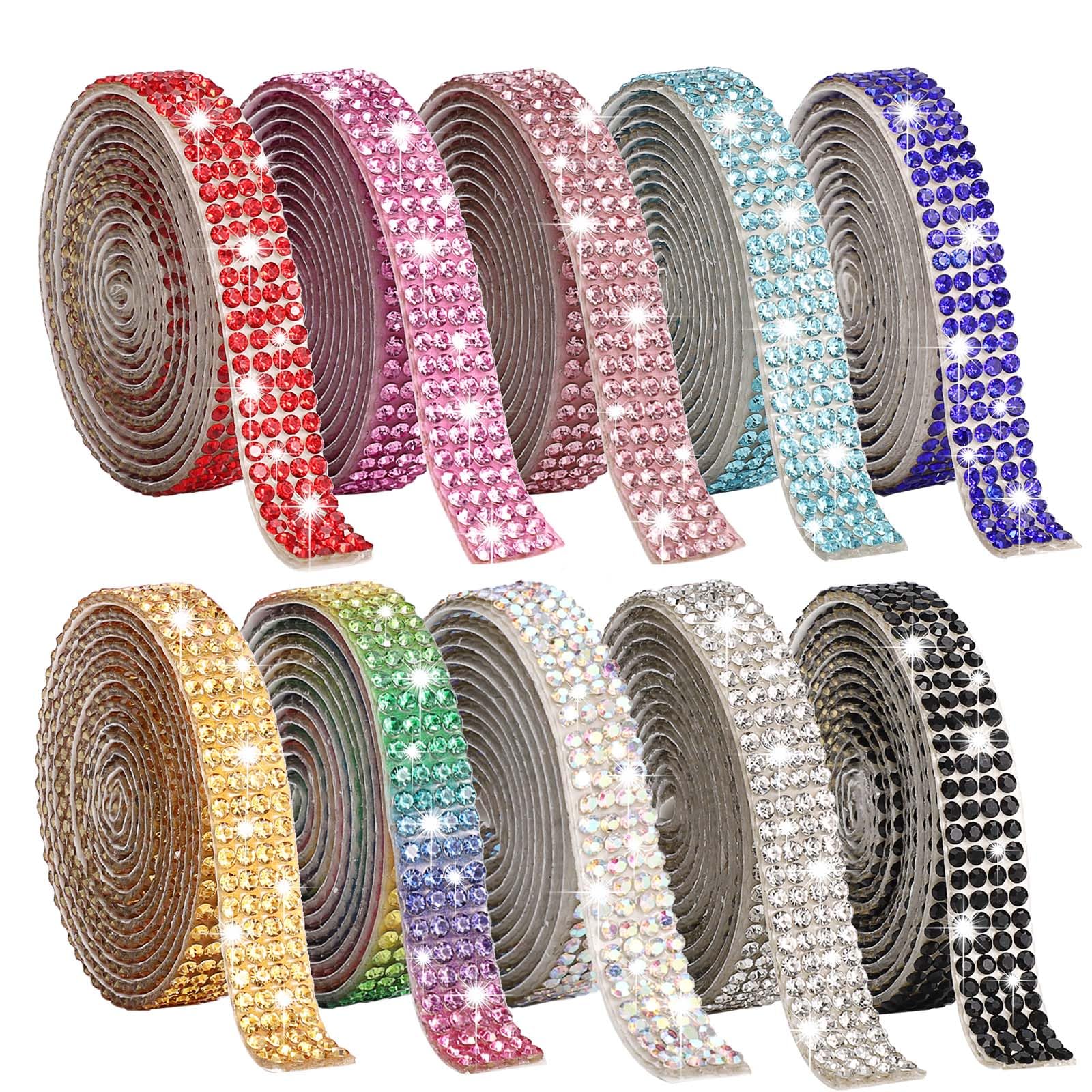 Gartful 10 rollos de cinta de diamantes de imitación, tiras autoadhesivas con gemas de cristal, calcomanías de colores mixtos, rol