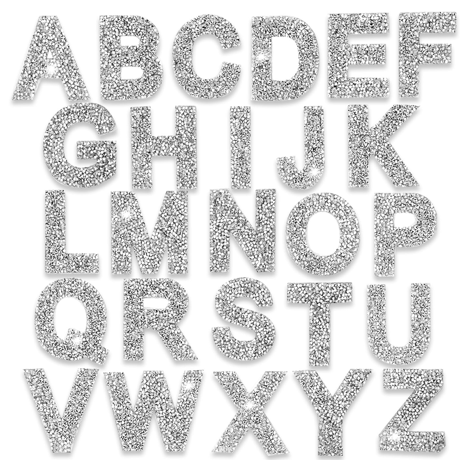 26 piezas de parches de letras con diamantes de imitación, calcomanías del alfabeto, autoadhesivas, parches de letras A-Z, calcoma