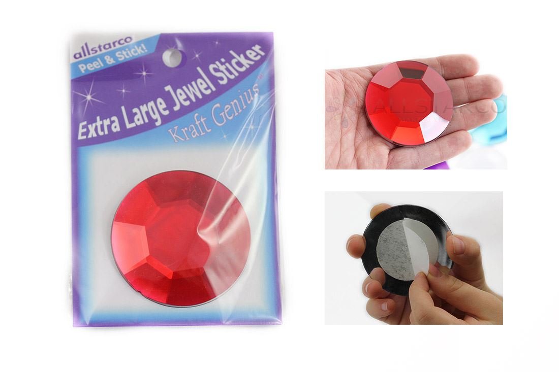 Rubí rojo H103 de 2.362 in, gran adhesivo redondo acrílico para cosplay, parte trasera plana, diamantes de imitación para disfrace