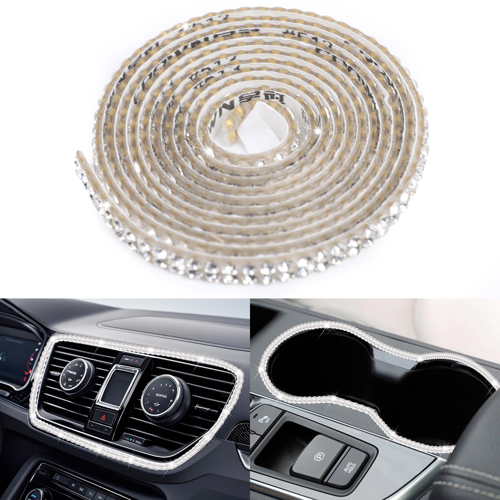 Borde interior del automóvil con diamantes de imitación, tira autoadhesiva para decoración de 1 yarda (blanco, 3.3 ft)