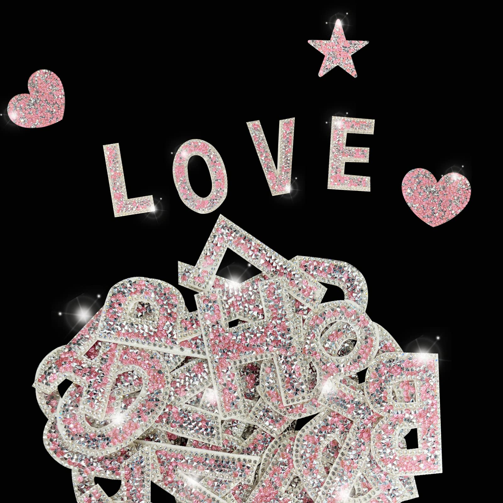 47 calcomanías de letras de diamantes de imitación grandes, 26 alfabetos autoadhesivos, purpurina de cristal de 10 números, corazó