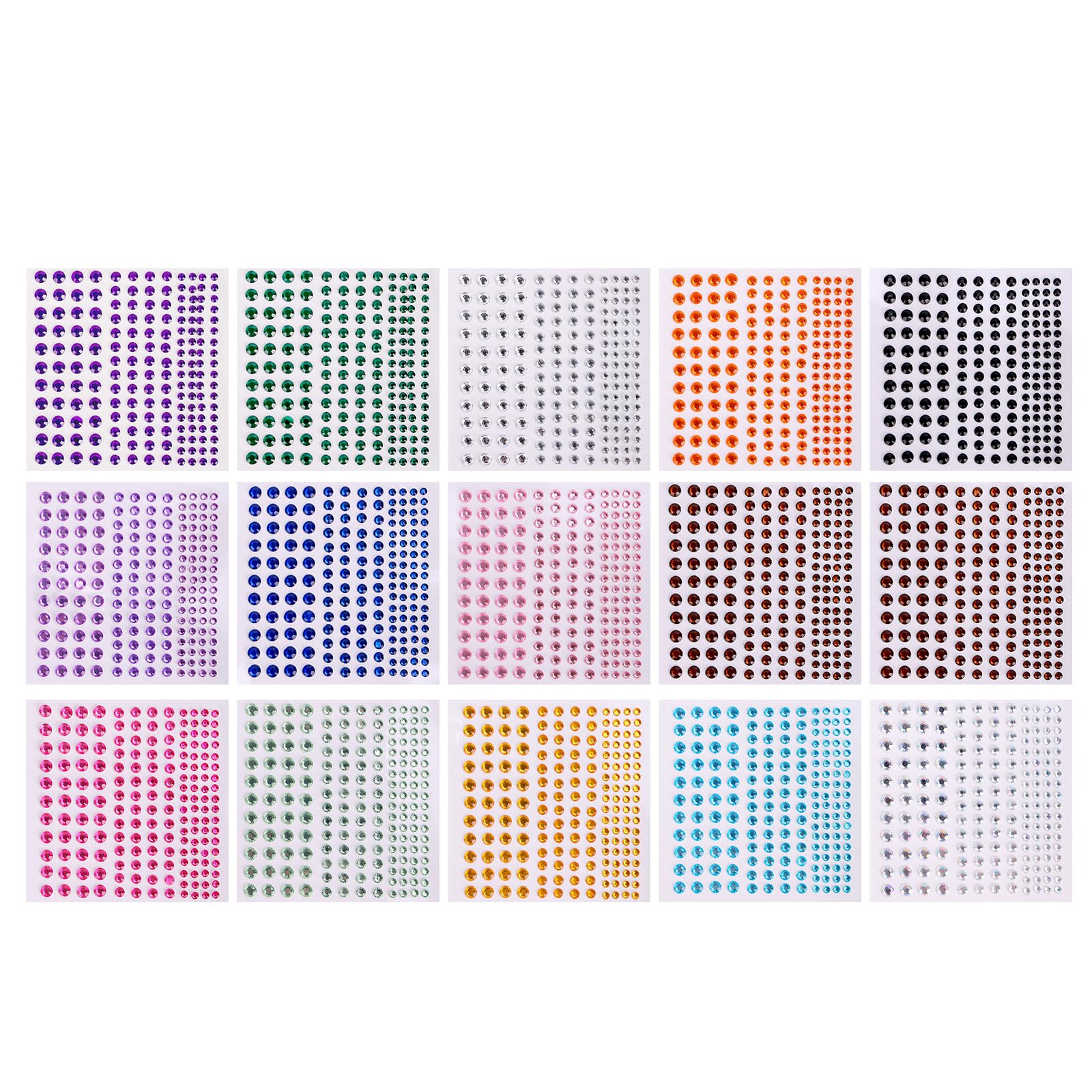 Calcomanías de diamantes de imitación, 2475 unidades de calcomanías de diamante autoadhesivas en 4 tamaños y 15 colores, calcomaní
