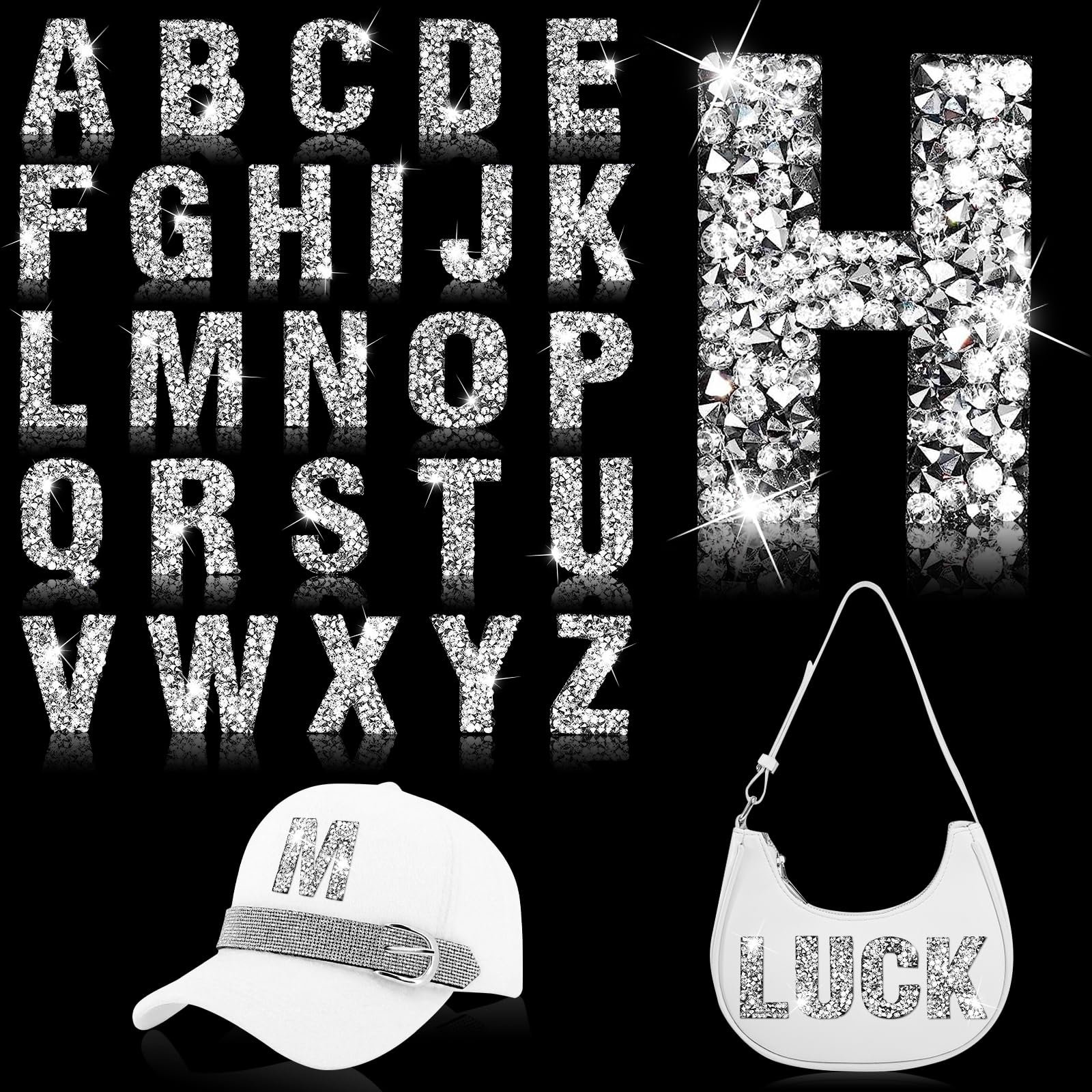 26 parches de letras para planchar con diamantes de imitación, parches para planchar con brillantina del alfabeto A-Z, letras bril