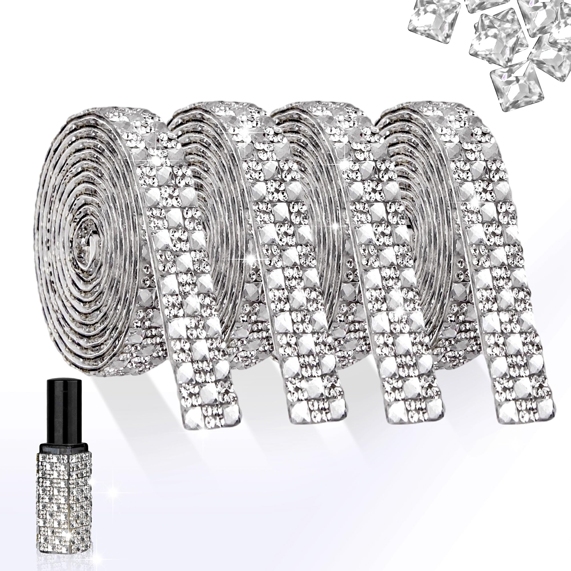 Molain 4 rollos de cintas de diamantes de imitación brillantes autoadhesivas, 1 yarda, tiras de diamantes de imitación plateadas p