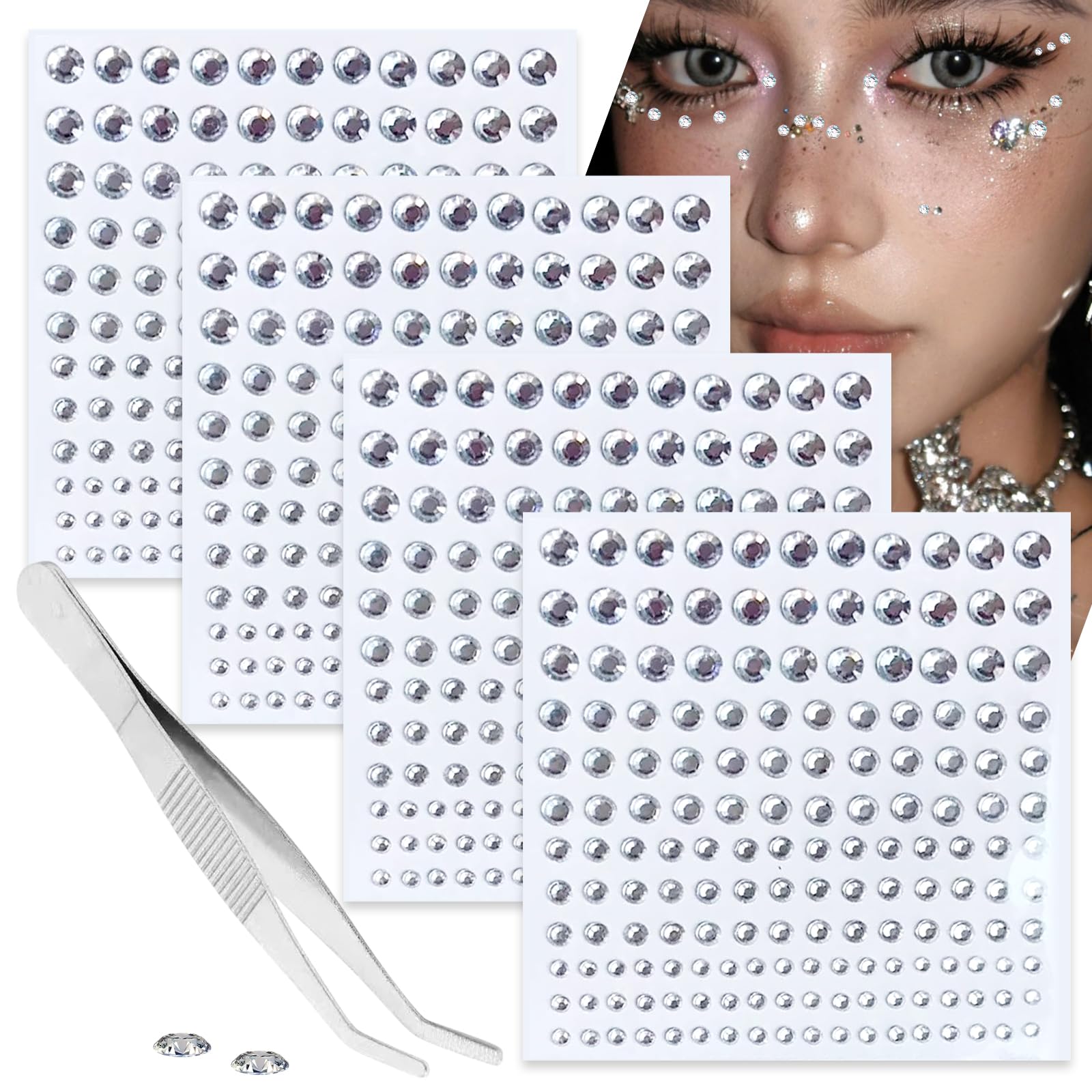 Gemas autoadhesivas para rostro y cuerpo, 660 calcomanías de diamantes de imitación para maquillaje, cabello, uñas, festivales, co