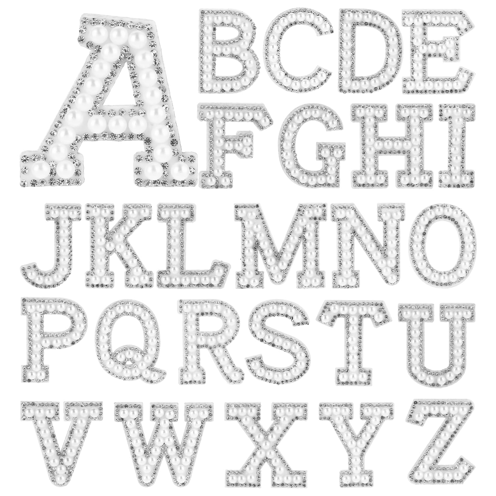 26 parches de letras con diamantes de imitación de perlas, adhesivos para planchar en letras de perlas, apliques de palabra, parch