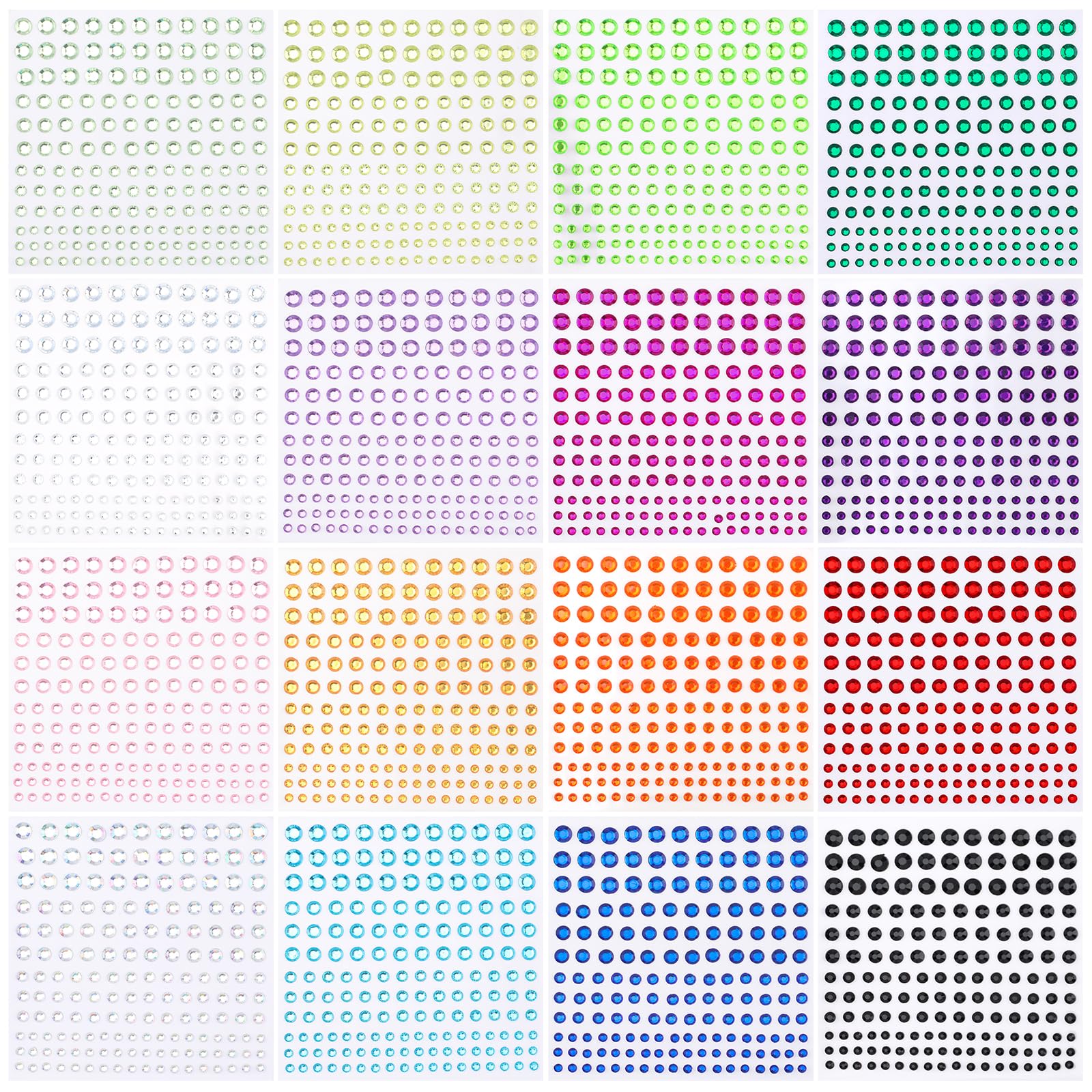 2640 calcomanías autoadhesivas de diamantes de imitación para cara, uñas y cuerpo, 4 tamaños de 16 colores, joyas para manualidade