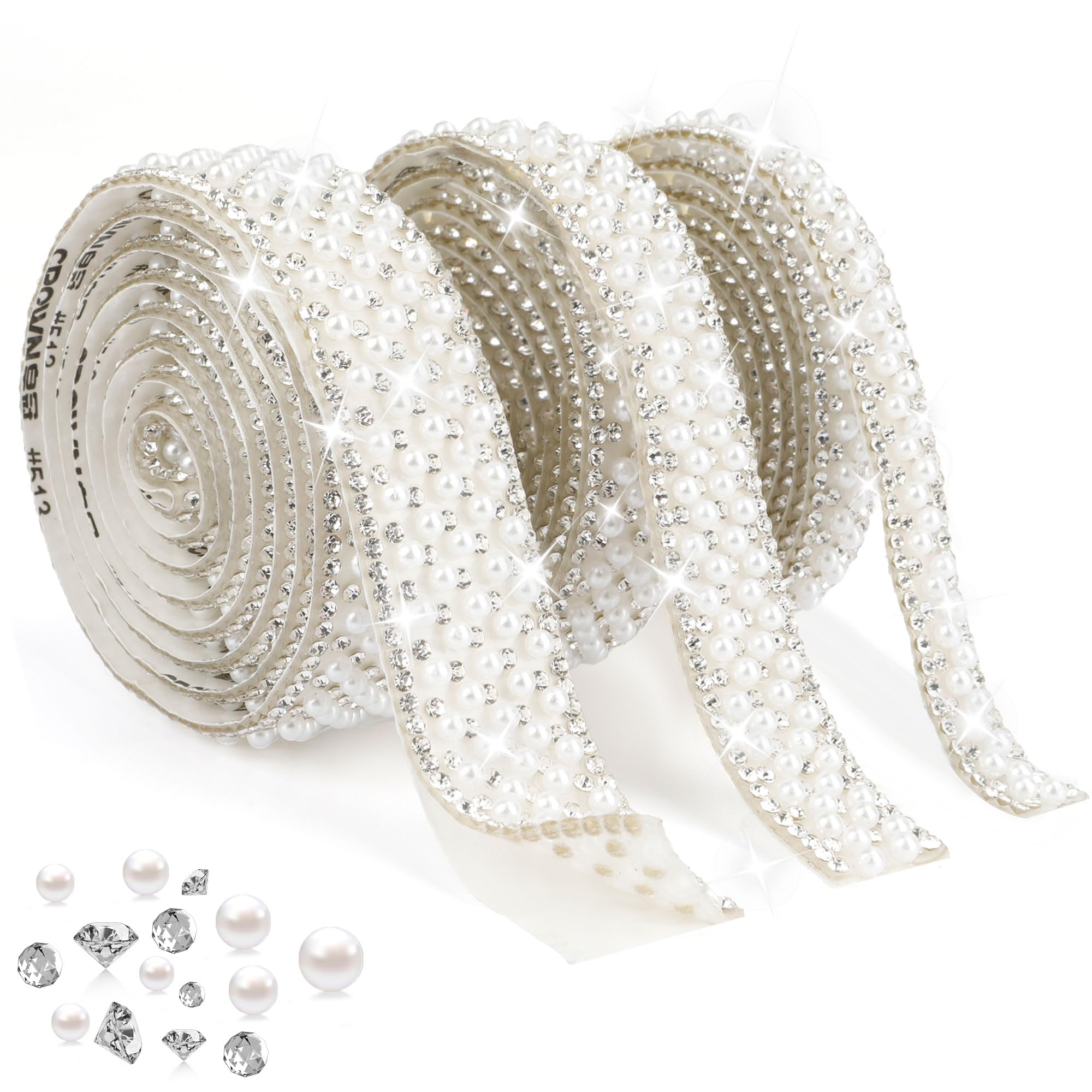 Cinta de perlas, 3 rollos de cinta de diamantes de imitación autoadhesiva, cinta de diamantes de imitación de cristal, rollo de ca