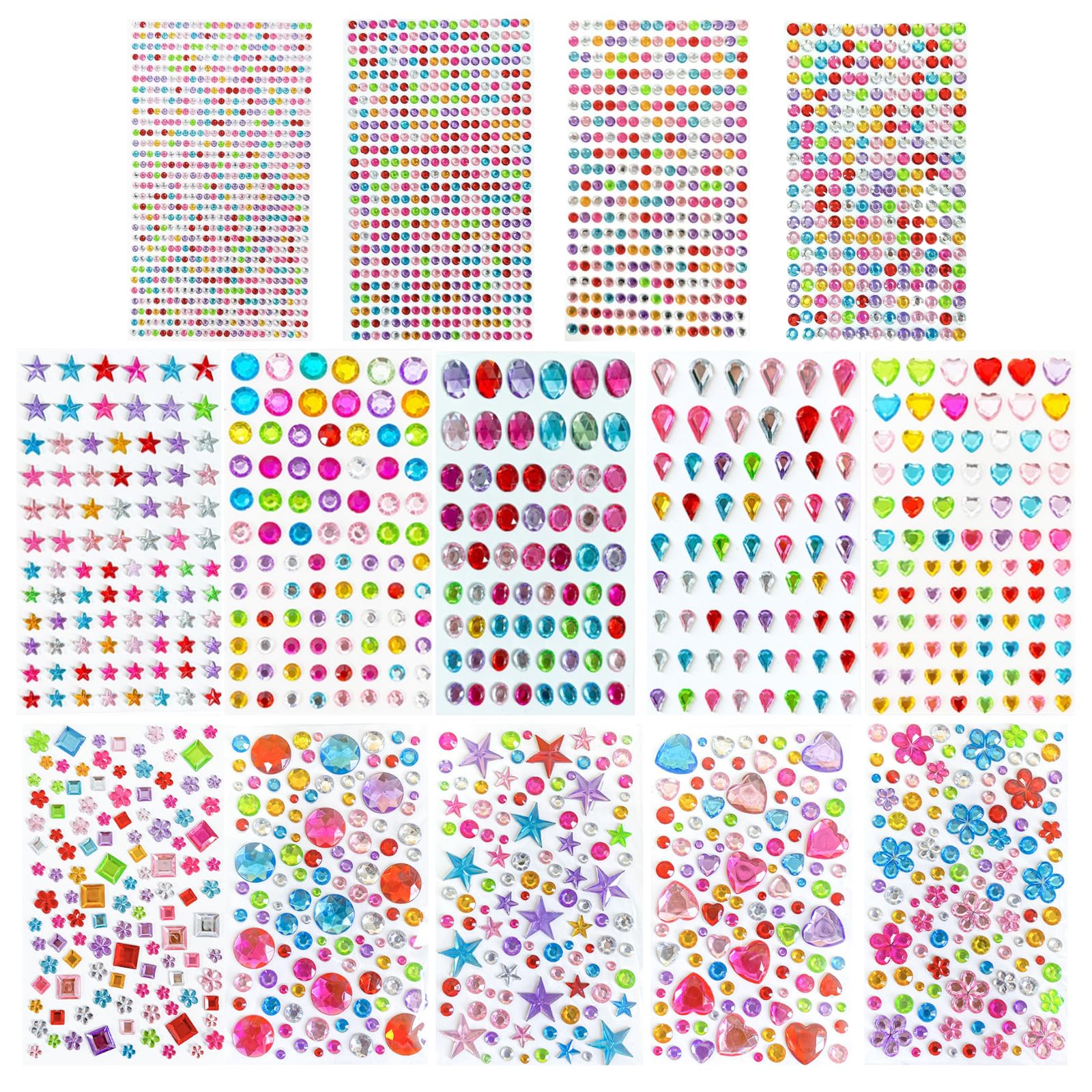 Cayton Calcomanías de gemas, 14 hojas, 2800 unidades, calcomanías autoadhesivas de diamantes de imitación, piedras preciosas brill