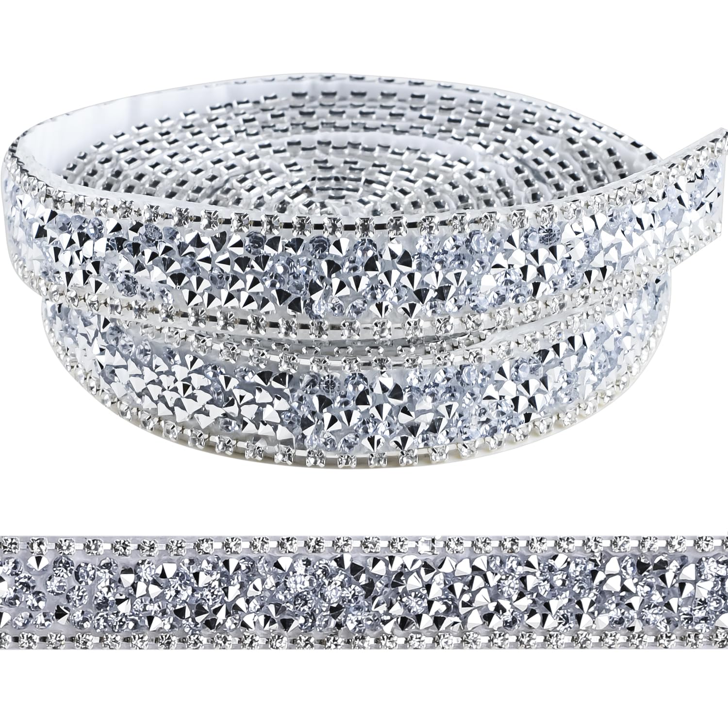 Cinta adhesiva brillante de resina con diamantes de imitación para manualidades, decoración de fiestas, 72 pulgadas (plateado)