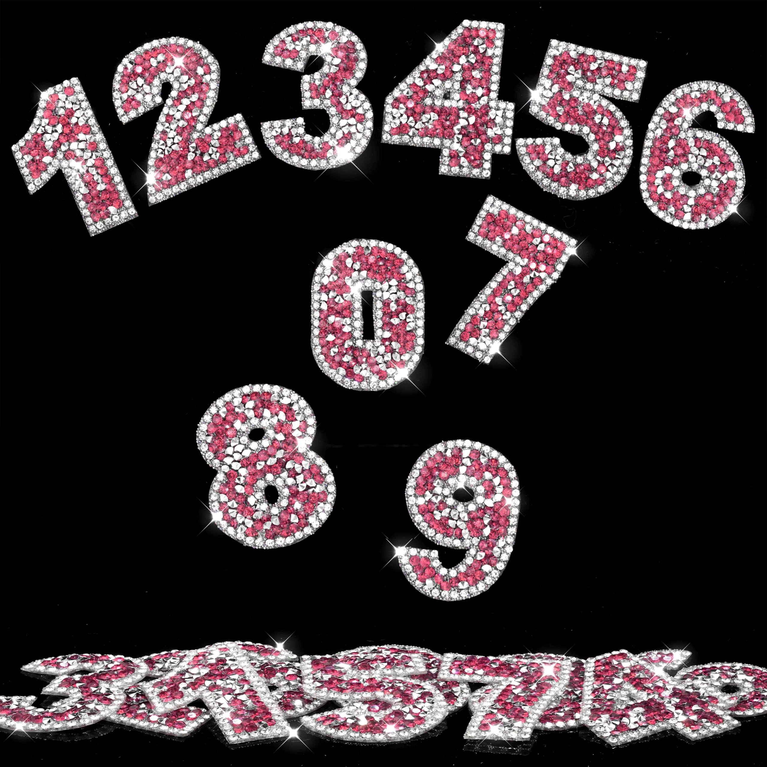 Locacrystal 60 calcomanías de números con diamantes de imitación brillantes, 6 juegos de 0 a 9 dígitos, autoadhesivos para plancha