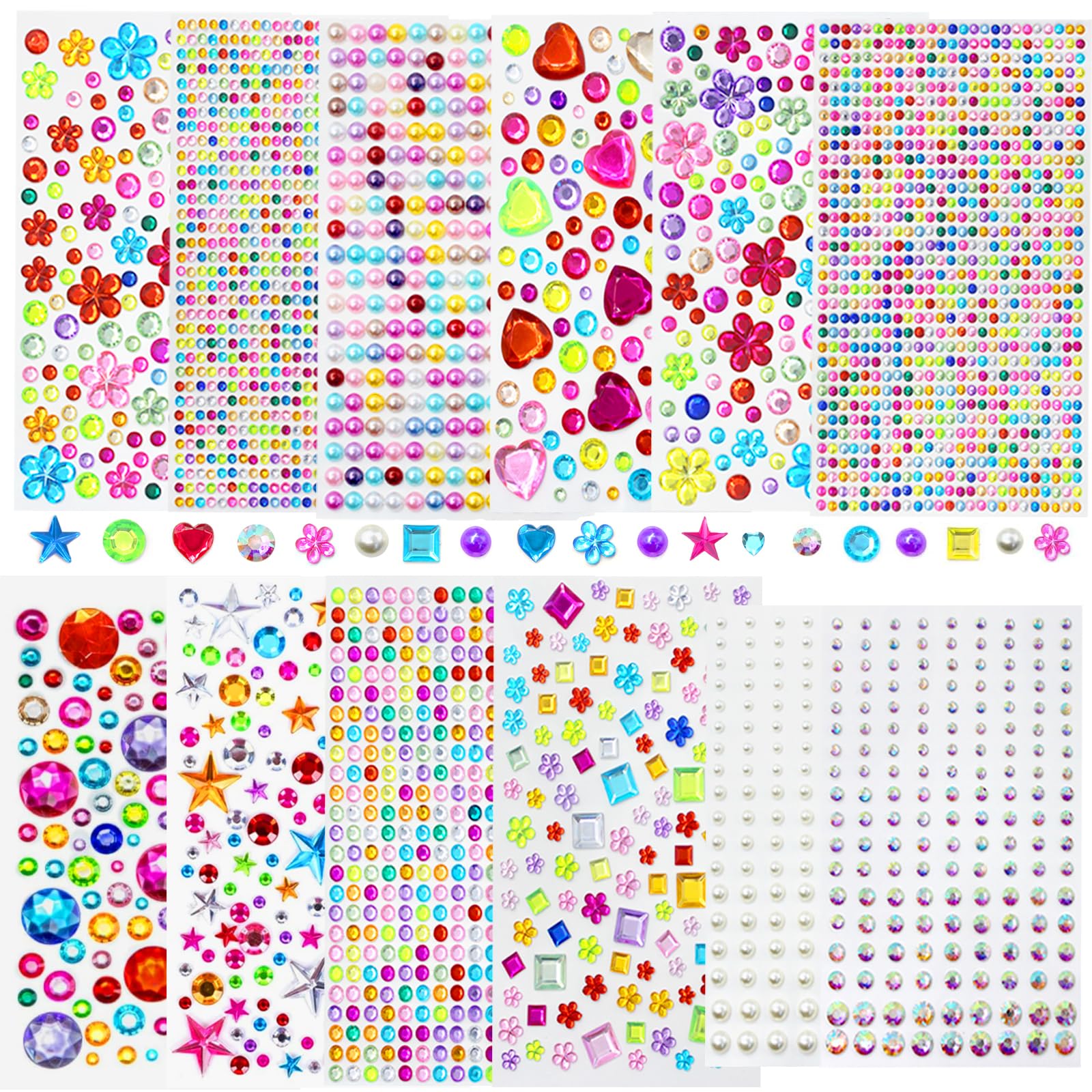 3500 calcomanías de gemas, 12 hojas autoadhesivas de diamantes de imitación de formas surtidas, calcomanías de acrílico con forma