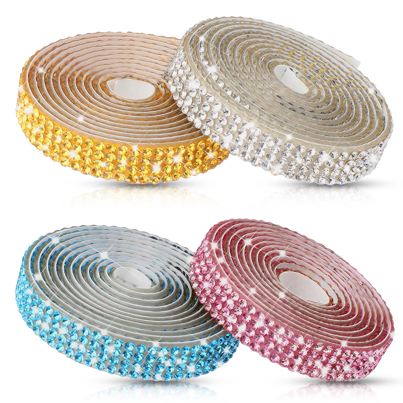 4 rollos de tiras de diamantes de imitación de cinta de diamantes de imitación autoadhesivas, diamantes de imitación para manualid