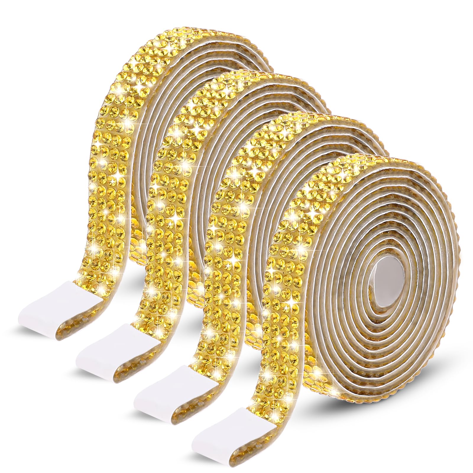 Cintas doradas de diamantes de imitación, 4 rollos de 4 yardas autoadhesivas con purpurina de cristal, rollo de envoltura con purp