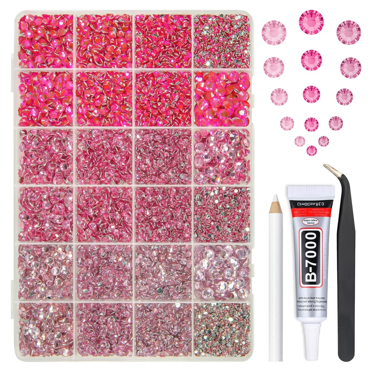 Diamantes de imitación de resina de cristal de la serie rosa de 3 colores de 0.079 in a 0.236 in con pegamento de joyería para des