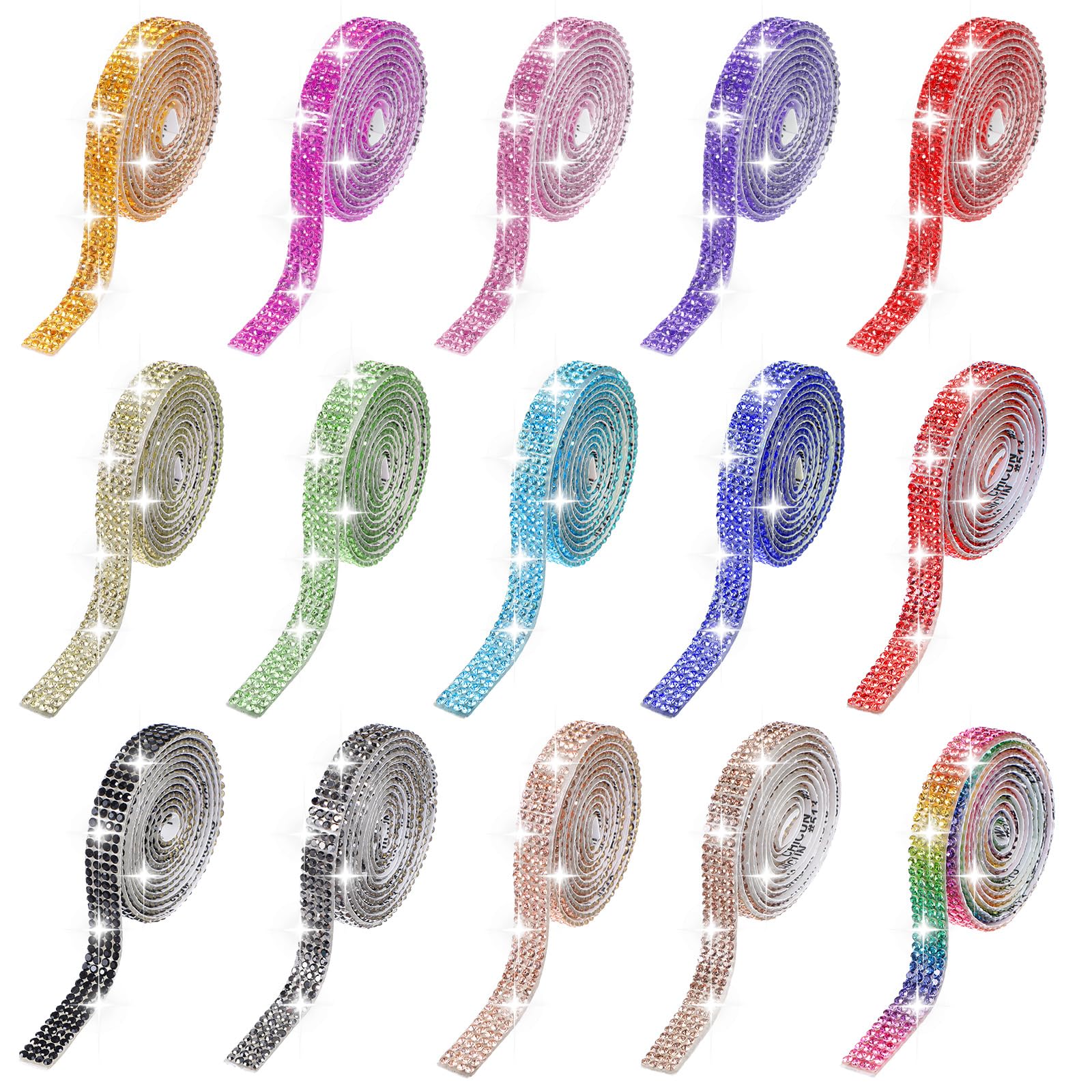 15 rollos de cinta autoadhesiva con diamantes de imitación de cristal, decoración de bricolaje con diamantes de imitación de 0.079