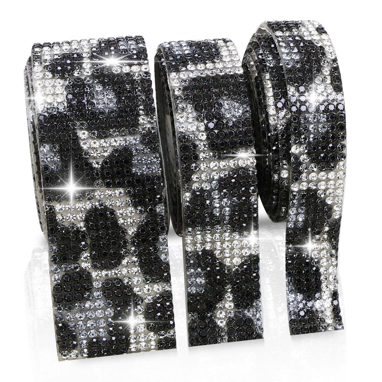 3 rollos de cinta de diamantes de imitación de cristal, autoadhesivas, con estampado de leopardo negro plateado, calcomanías de di