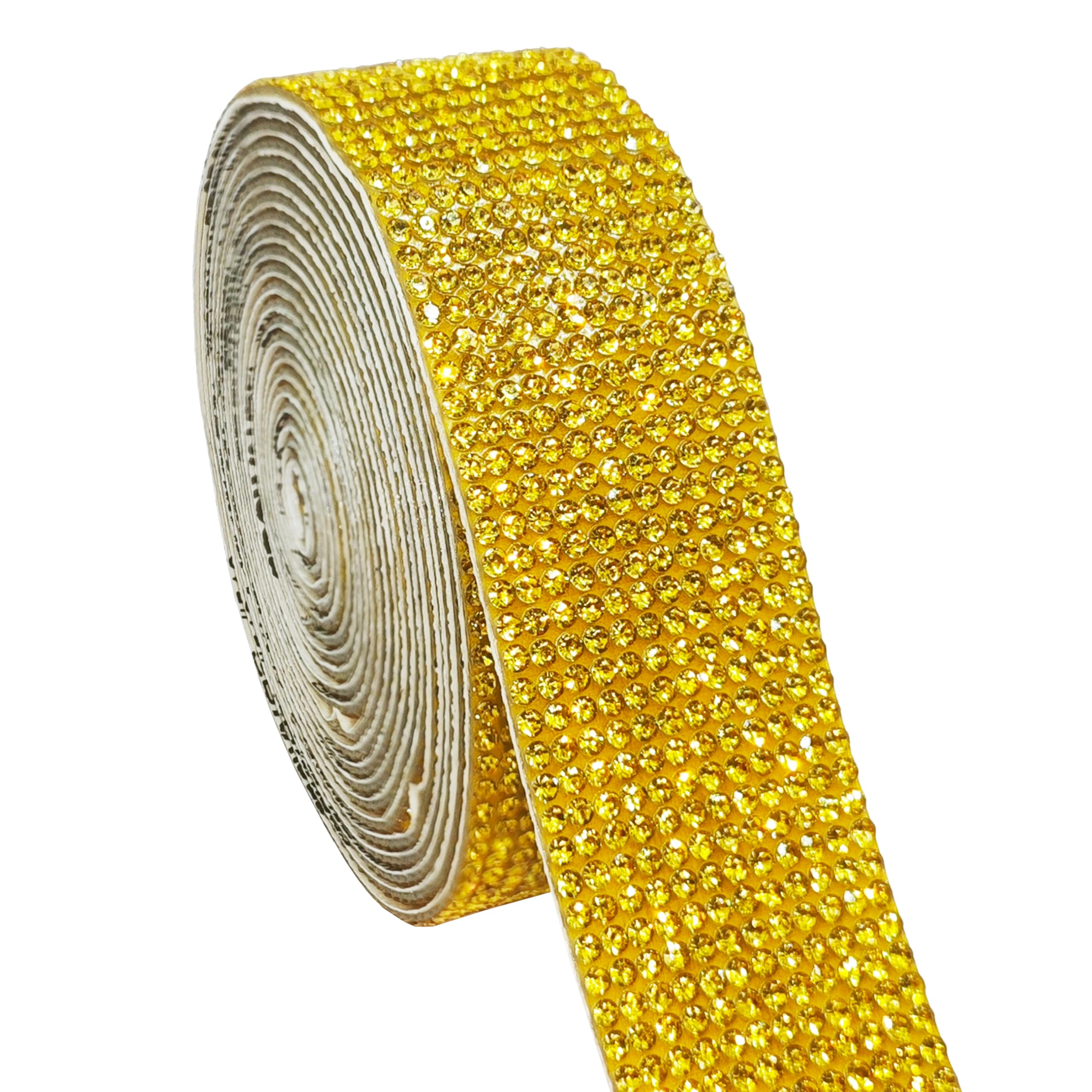 4 tiras de diamantes de imitación dorados, 4 yardas autoadhesivas de diamantes de imitación de 4 filas, cinta brillante para decor