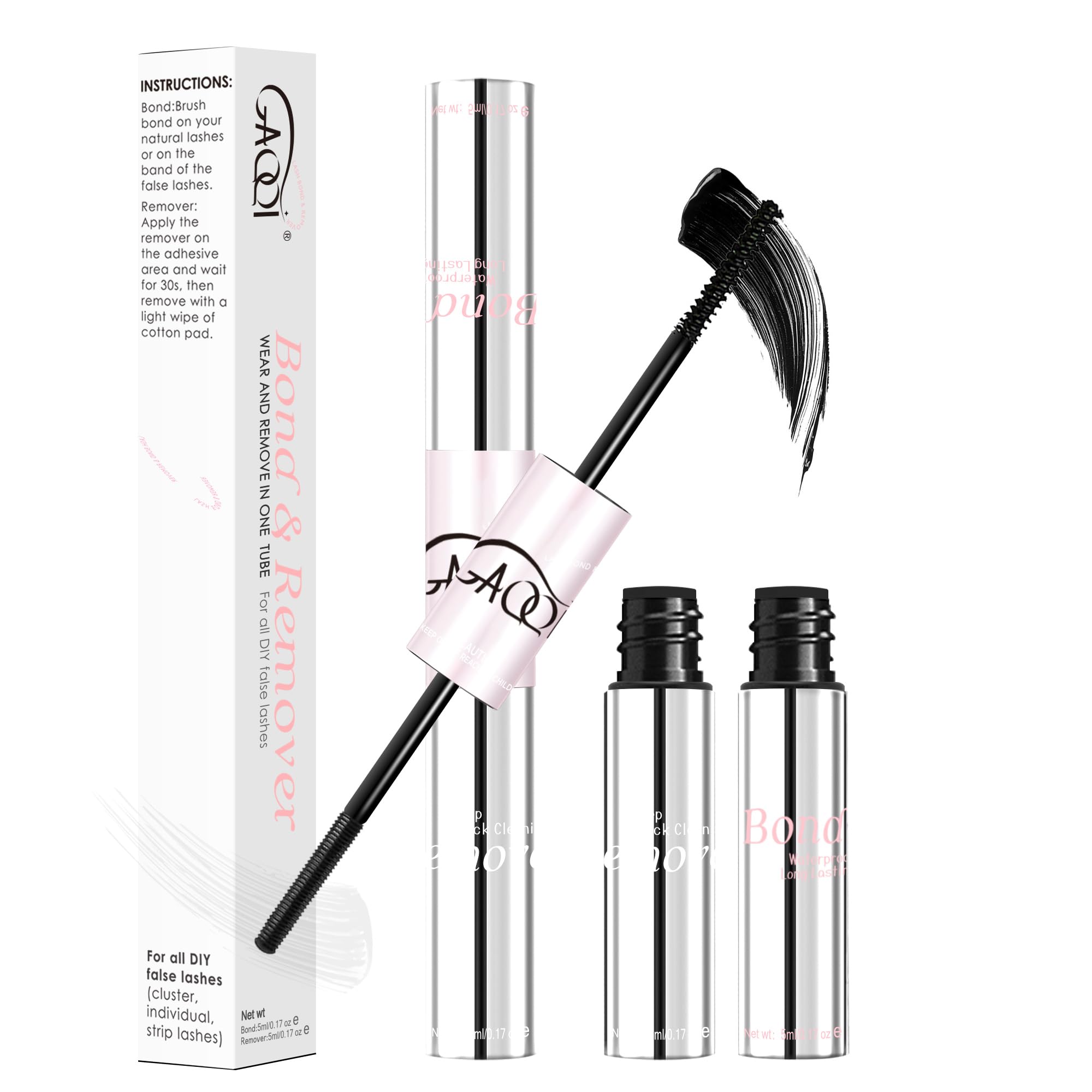 GAQQI Pegamento y removedor de pestañas 2 en 1, pegamento de racimo de pestañas impermeable y removedor de pestañas, pegamento de
