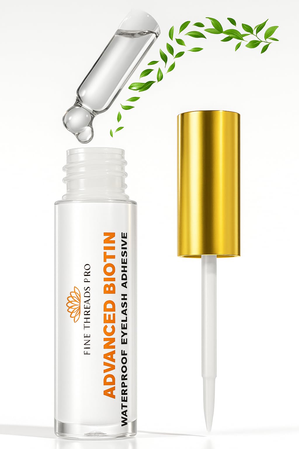 Pegamento de pestañas transparente 2 en 1 con biotina de crecimiento de pestañas; ojos sensibles; fuerte sujeción fácil de colocar