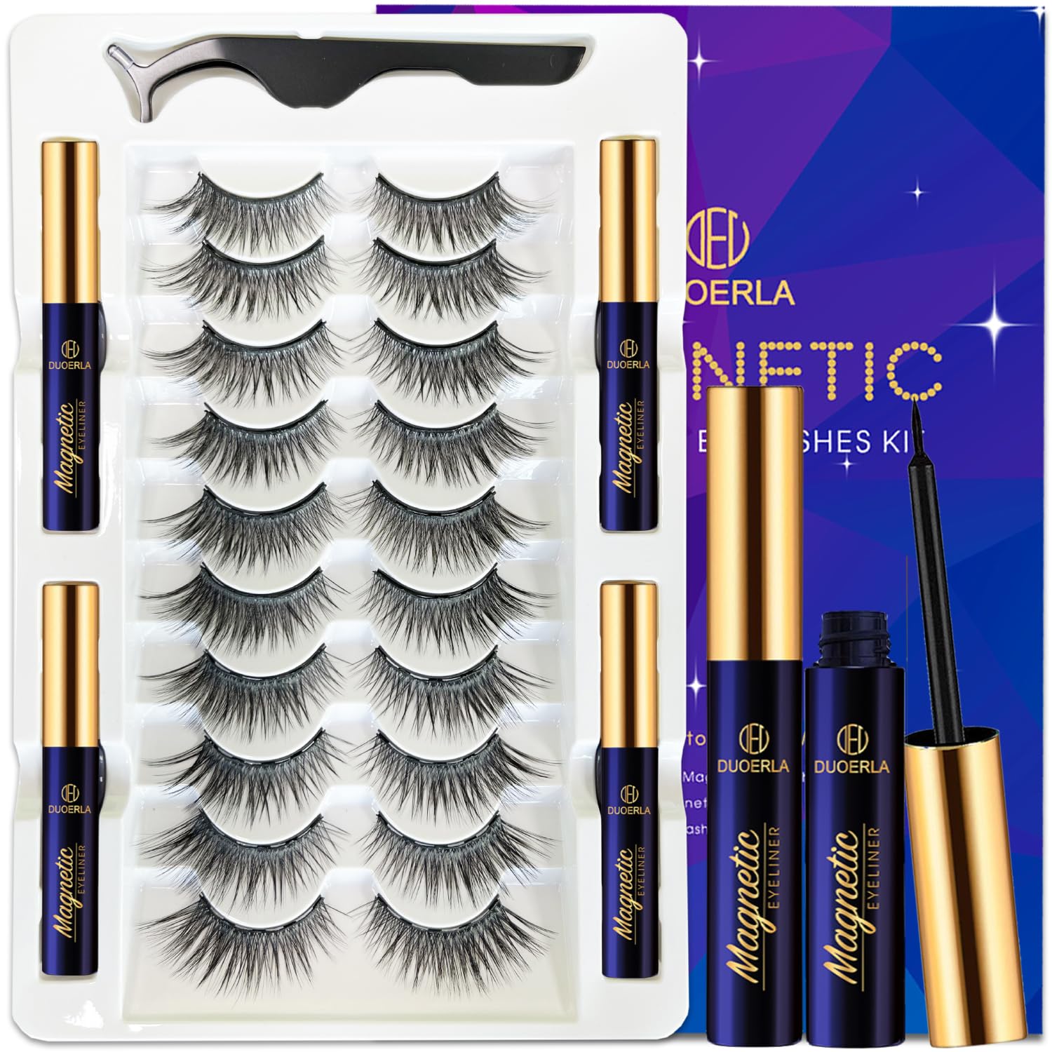 DUOERLA – Pestañas magnéticas de aspecto natural, pestañas magnéticas de ojo de gato con kit de delineador de ojos, mejoradas de l