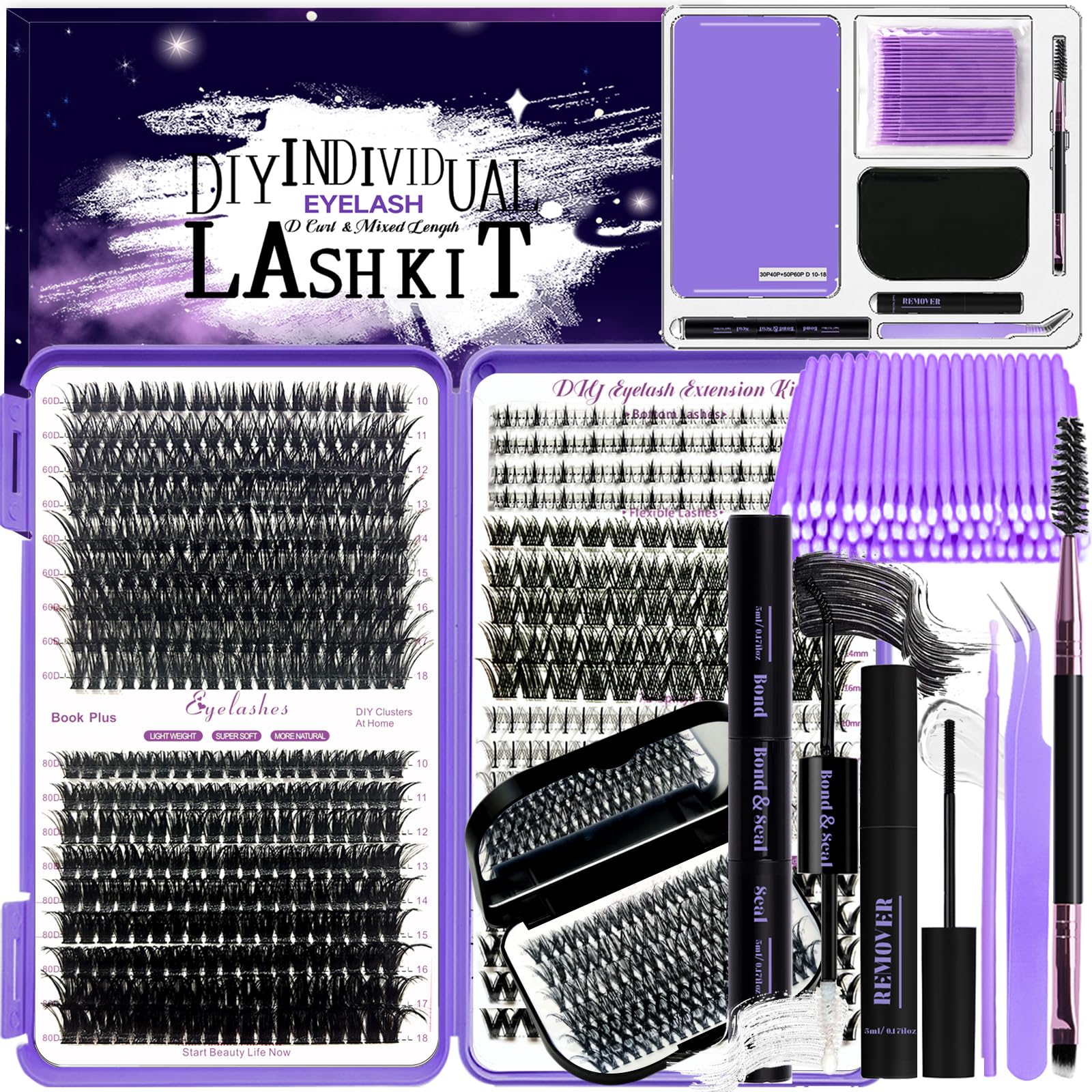 Kit de extensión de pestañas para bricolaje, 704 unidades, rizo D con pestañas inferiores, juego de extensiones de pestañas indivi