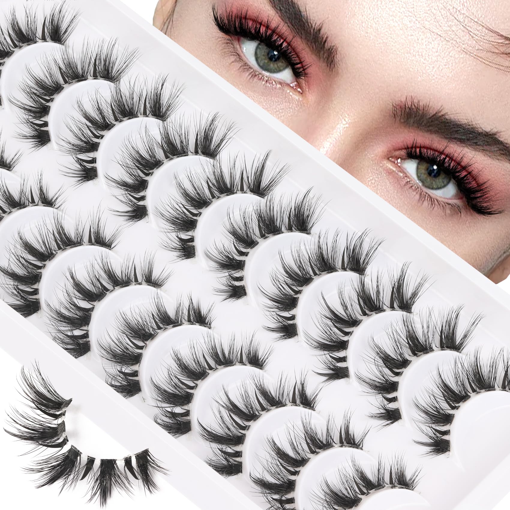 Pestañas postizas esponjosas de visón de 0.631 pulgadas, tiras de pestañas postizas gruesas naturales, 10 juegos de pestañas posti
