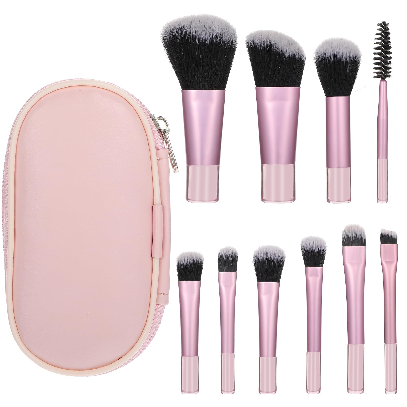 Juego de 10 brochas de maquillaje de viaje, color rosa, portátil, de función completa, kit cosmético con bolsa para brochas, juego