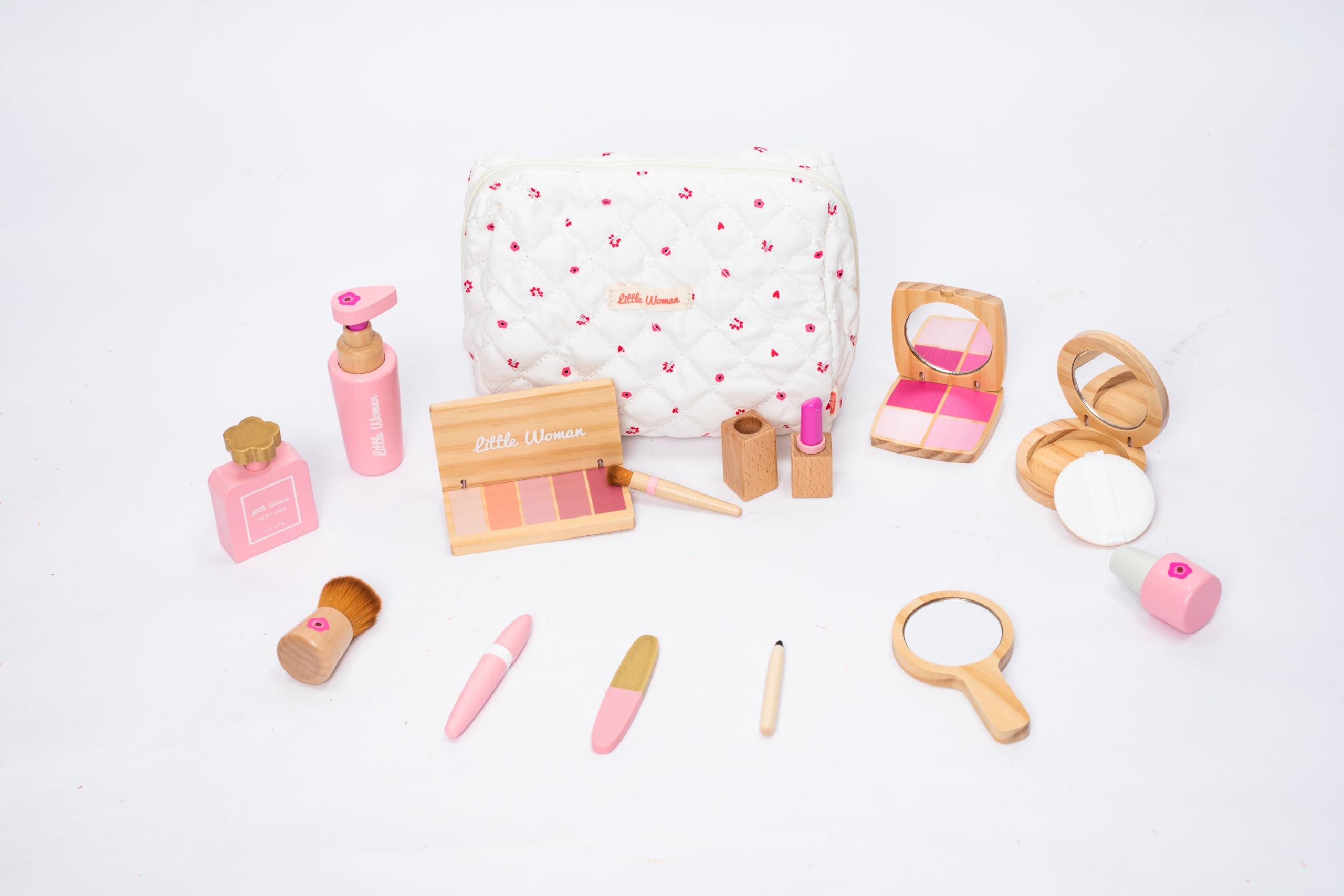 Wooden Makeup Toy Set for Girls – 11 PCS Pretend Play Makeup Kit for Kids with Mirror, Lipstick, Eyeshadow, Nail Polish, Perfume,