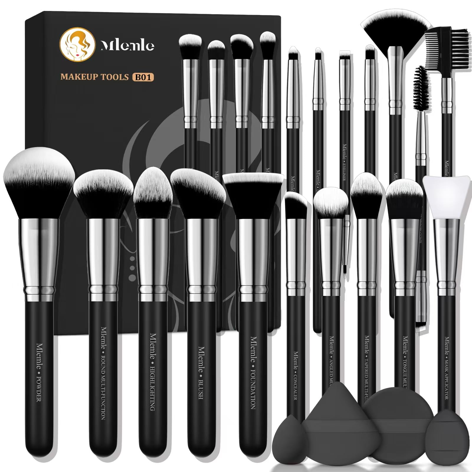 MAANGE 20 brochas de maquillaje con caja de regalo, pinceles de maquillaje multifuncionales de doble extremo para mezclar polvo lí