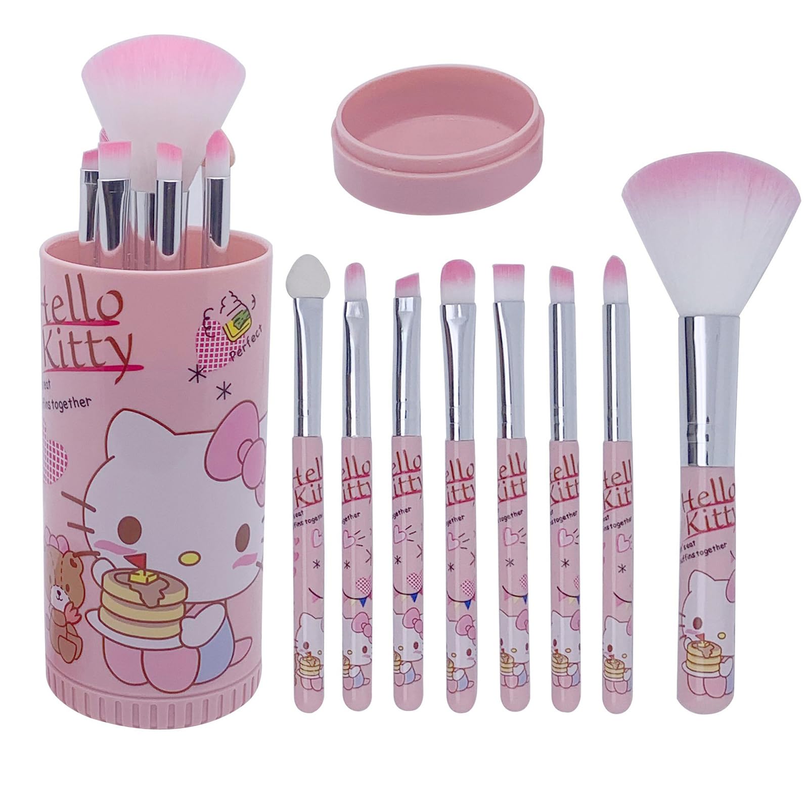 Lindo juego de brochas de maquillaje, 8 brochas de maquillaje rosas y soporte para brochas de maquillaje, sombra de ojos, brillo d