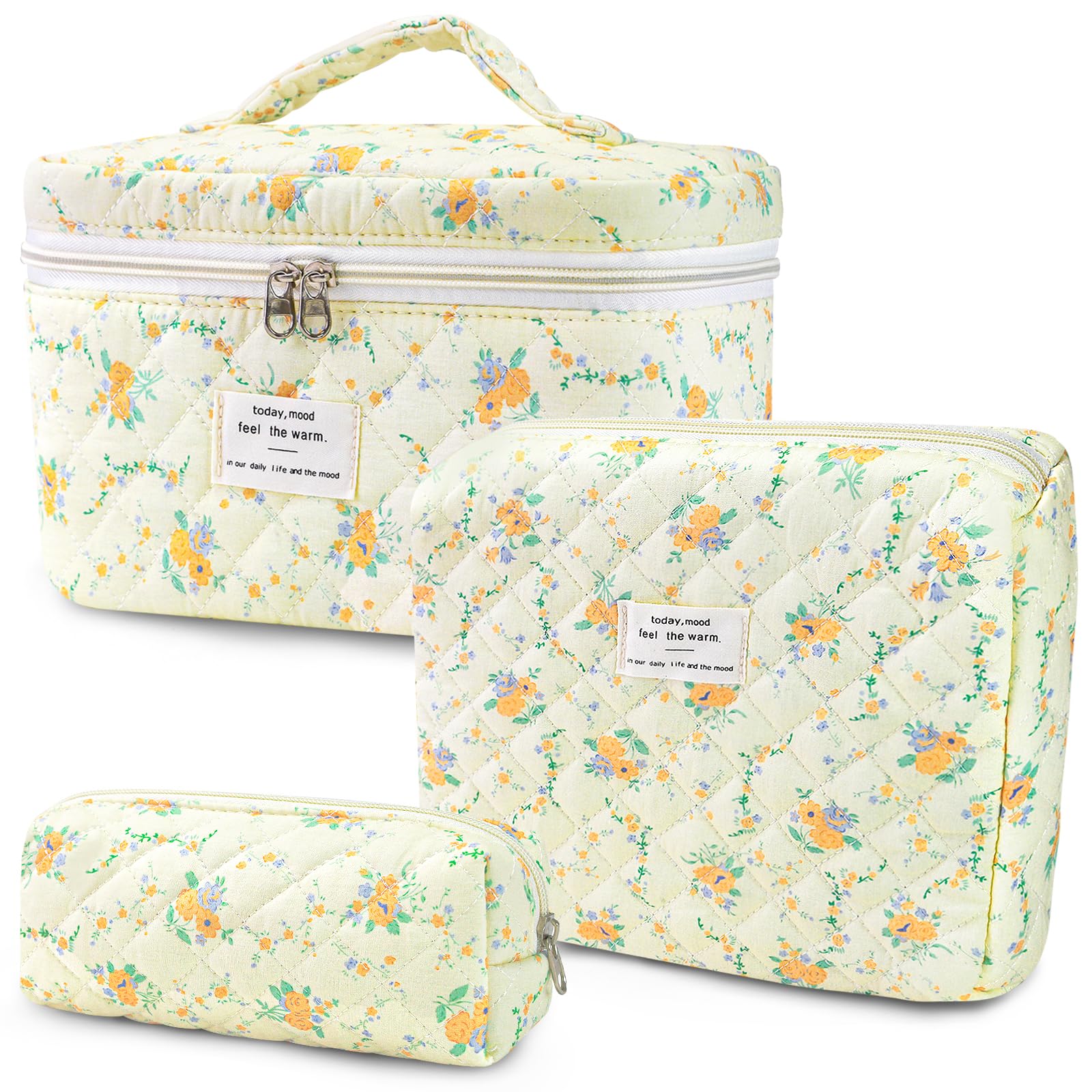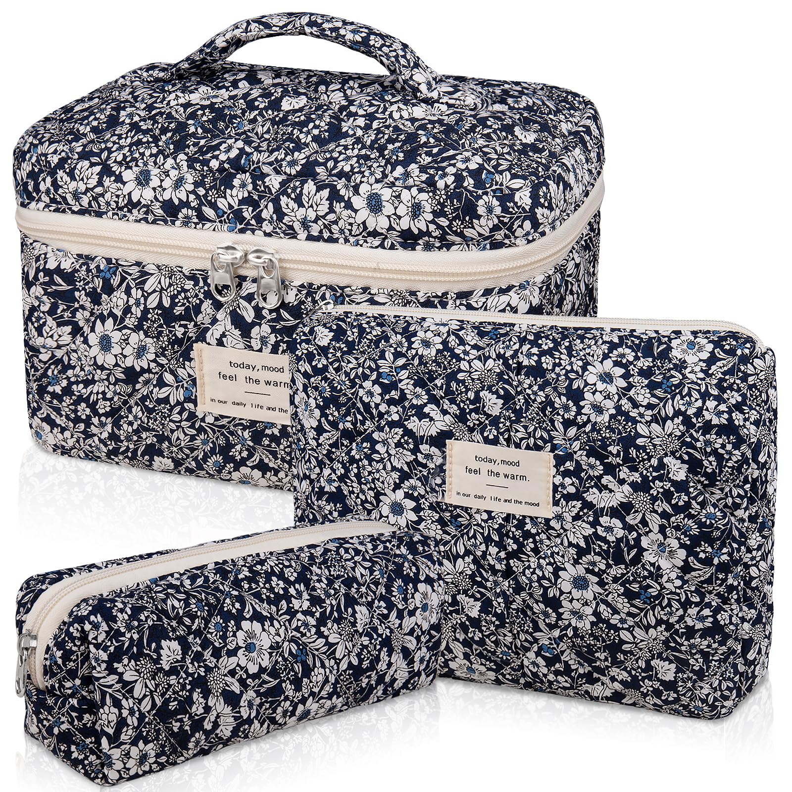 Juego de bolsos de maquillaje, bolso acolchado, bolso cosmético grande de diseño floral, para maquillaje y artículos de tocador pa