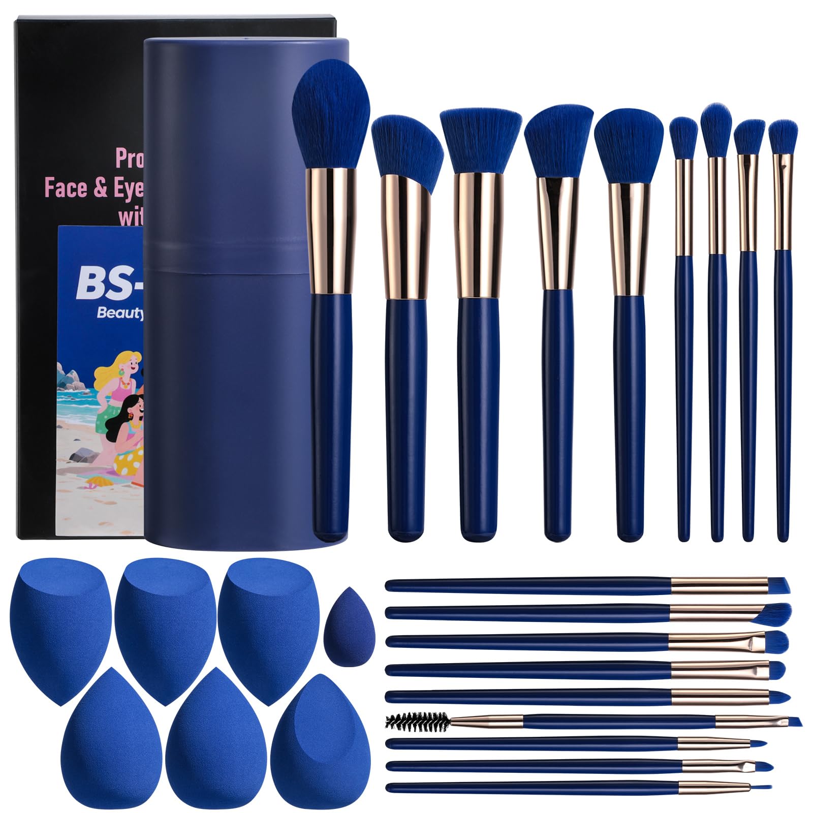 BS-MALL Juego de 18 brochas de maquillaje con 7 esponjas de licuadora de belleza, perfectas para viajes y uso diario, incluye cepi