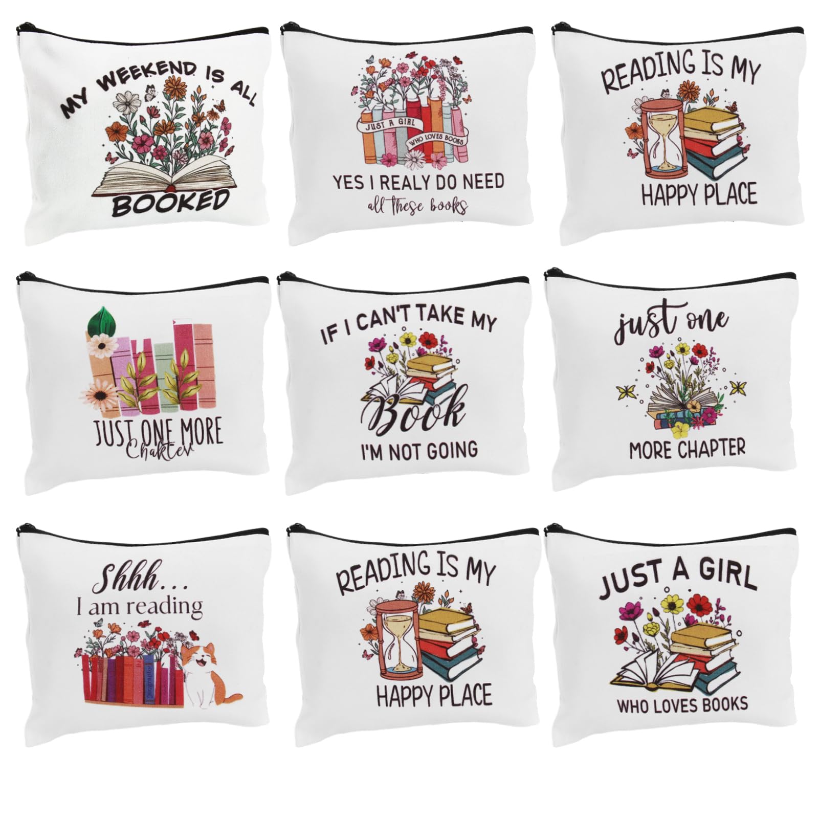 8 Pcs Book Lovers Makeup Bag Set,Cosmetic Bag with Zipper Pouch for Teen Adult WomenA Perfect Blend of Style and Functionality(Boo