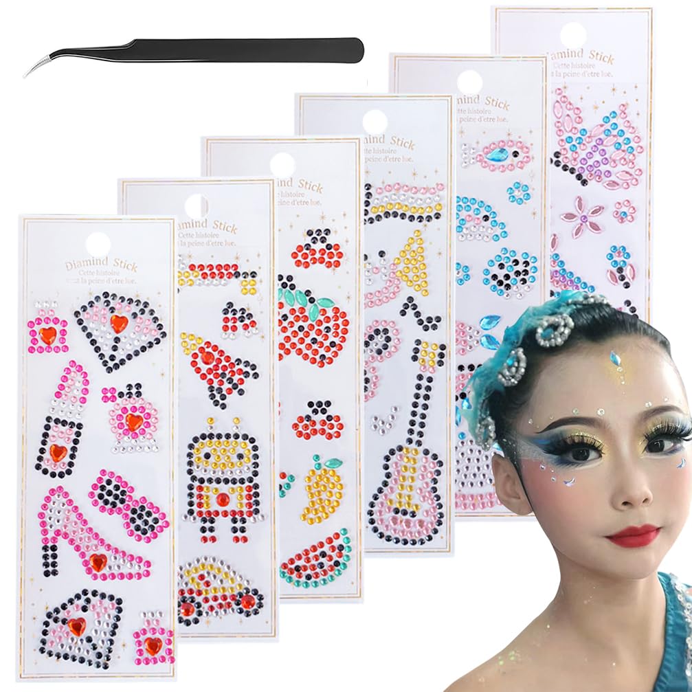 9 hojas de calcomanías para la cara, autoadhesivas, para festivales, rostros, calcomanías de diamantes de imitación para rostro, o