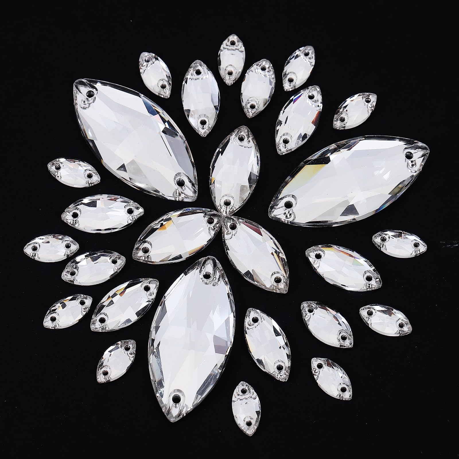 Coser diamantes de imitación de cristal con parte trasera plana con agujeros, gemas de vidrio en forma de ojo de caballo para ropa