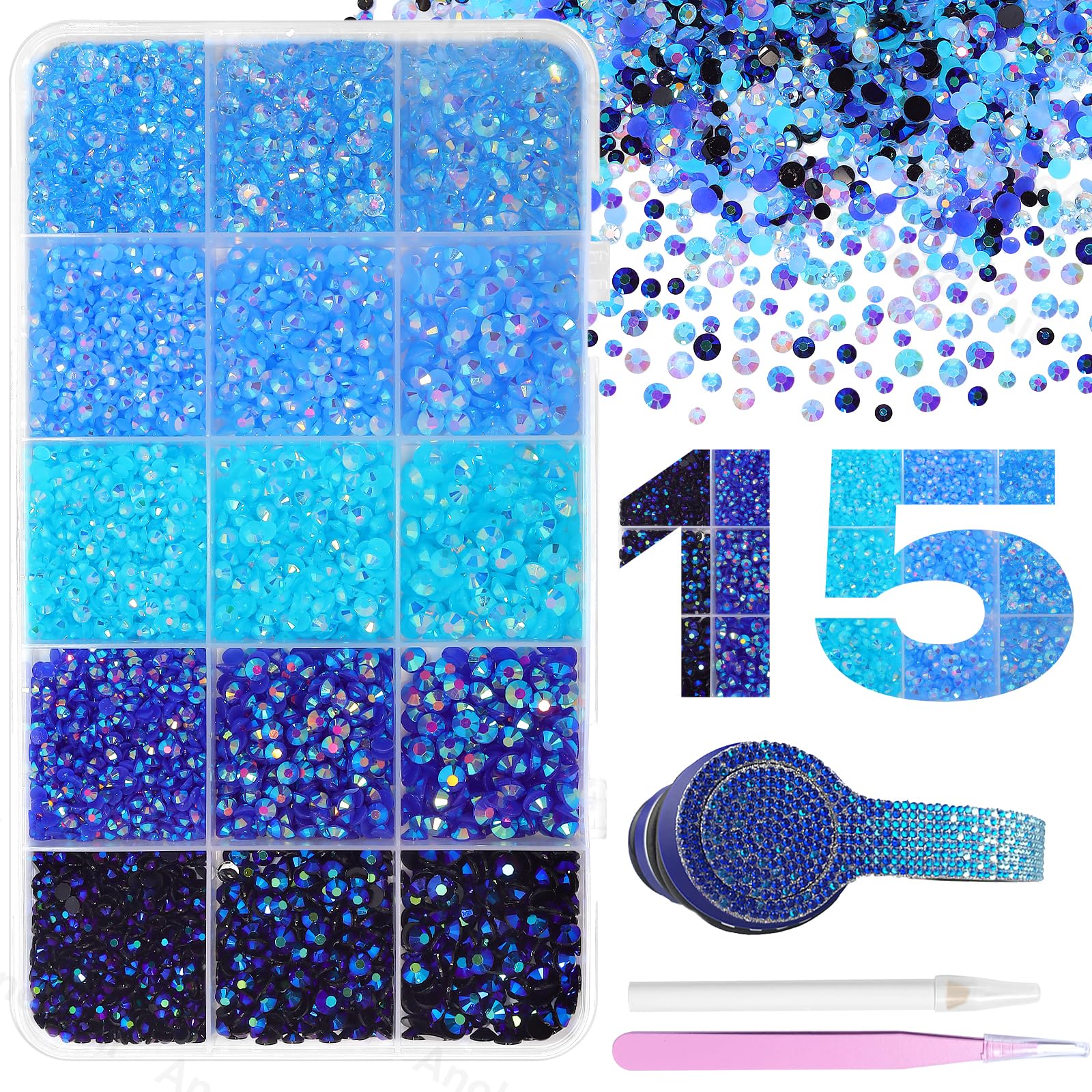 Juego de 15000 diamantes de imitación azules para deslumbrar, tamaños mixtos de gemas de resina deslumbrantes, gemas rosadas y bla