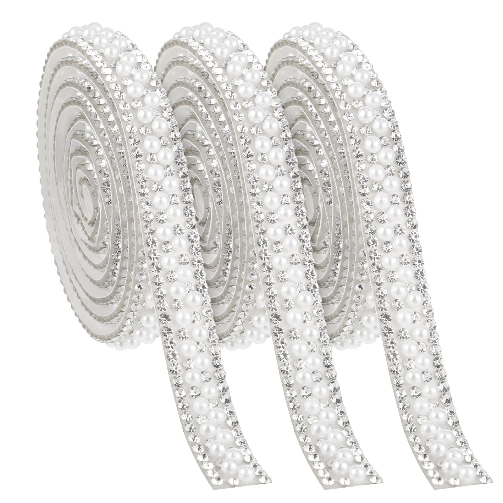 3 rollos de cinta de perlas de diamantes de imitación autoadhesivas, tiras de perlas brillantes, tiras de perlas de diamante para