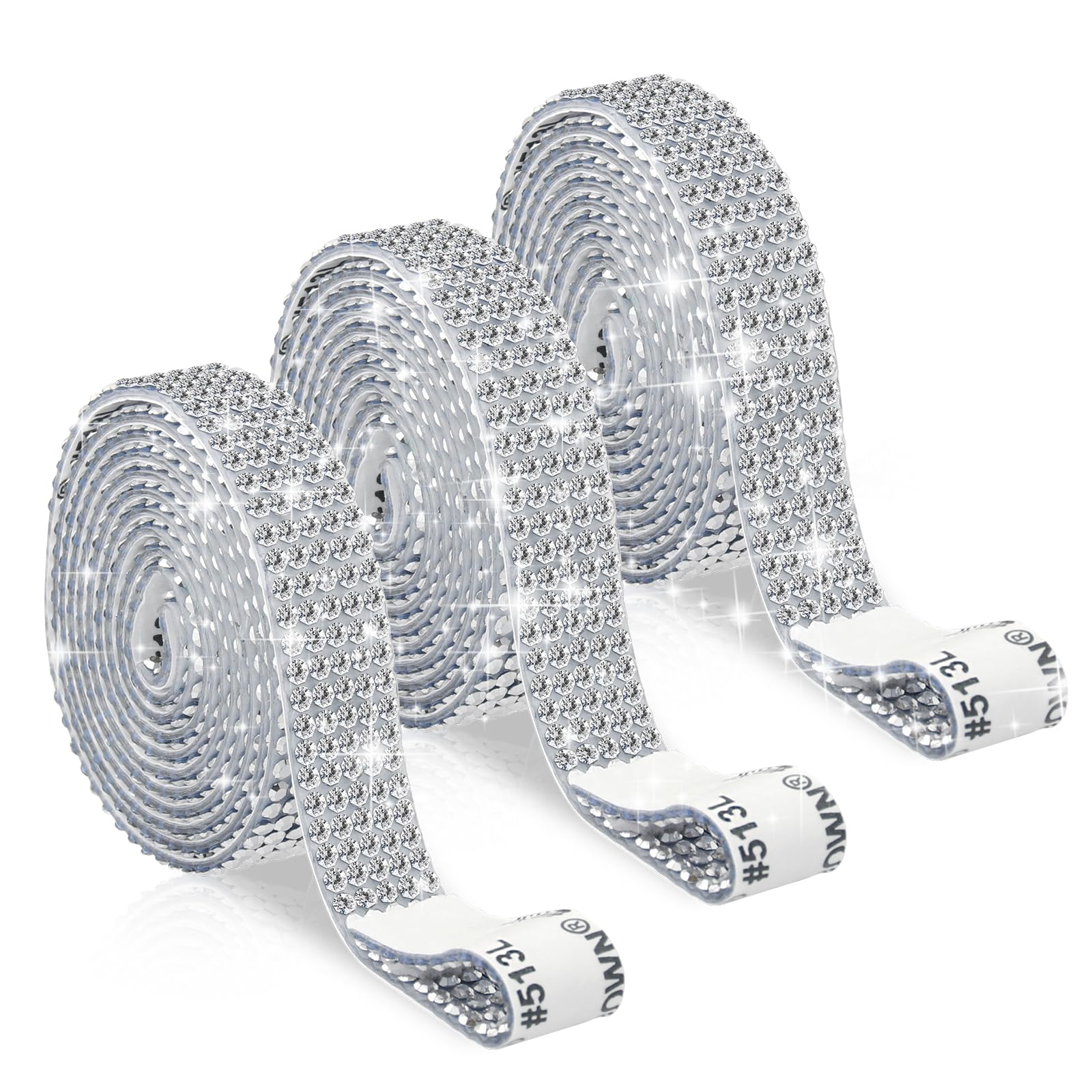 3 rollos de tiras de diamantes de imitación autoadhesivas, rollo de tiras de cinta de diamantes de imitación de cristal de 3 yarda