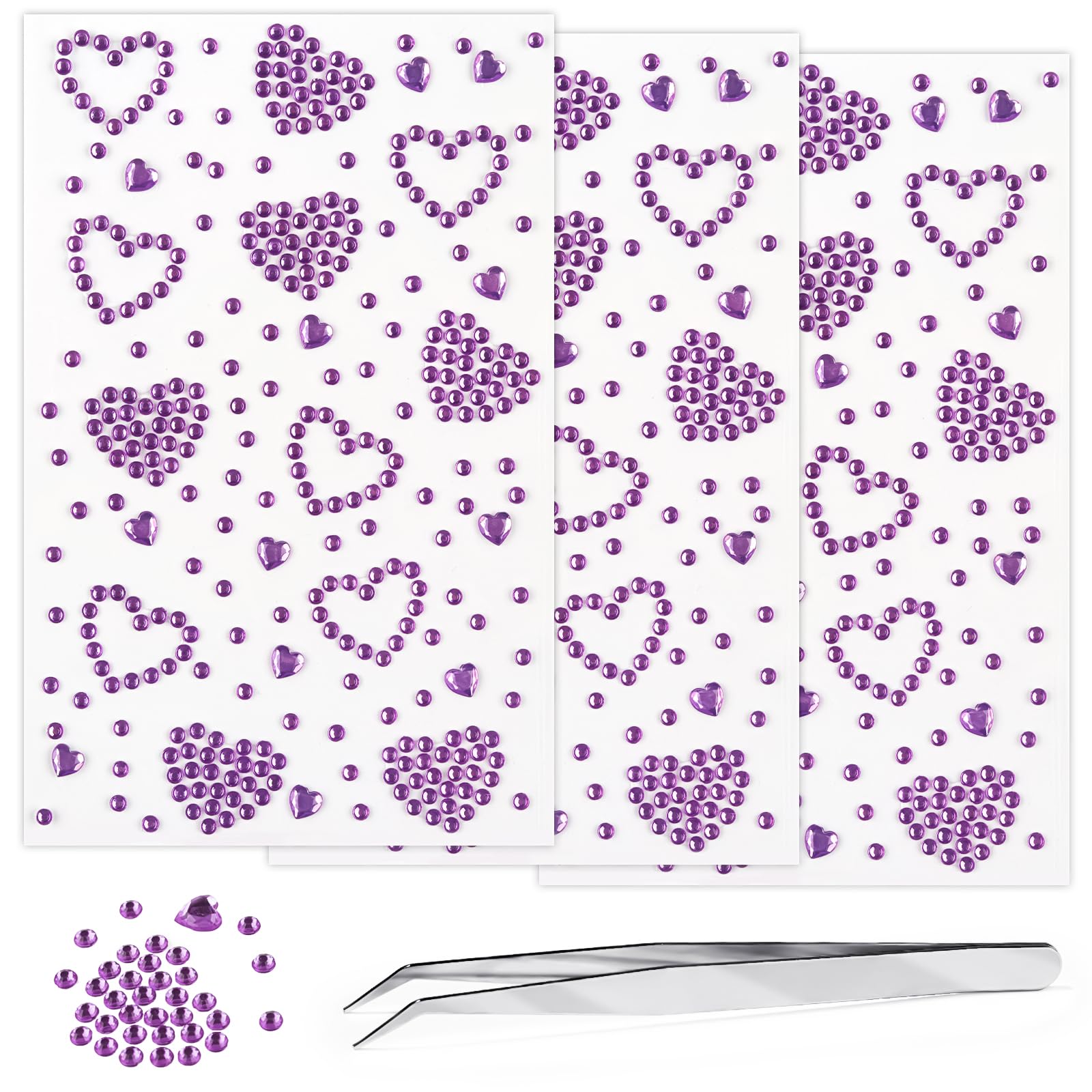 Calcomanías de gemas de corazón morado, joyas para manualidades, calcomanías autoadhesivas de diamantes de imitación, calcomanías