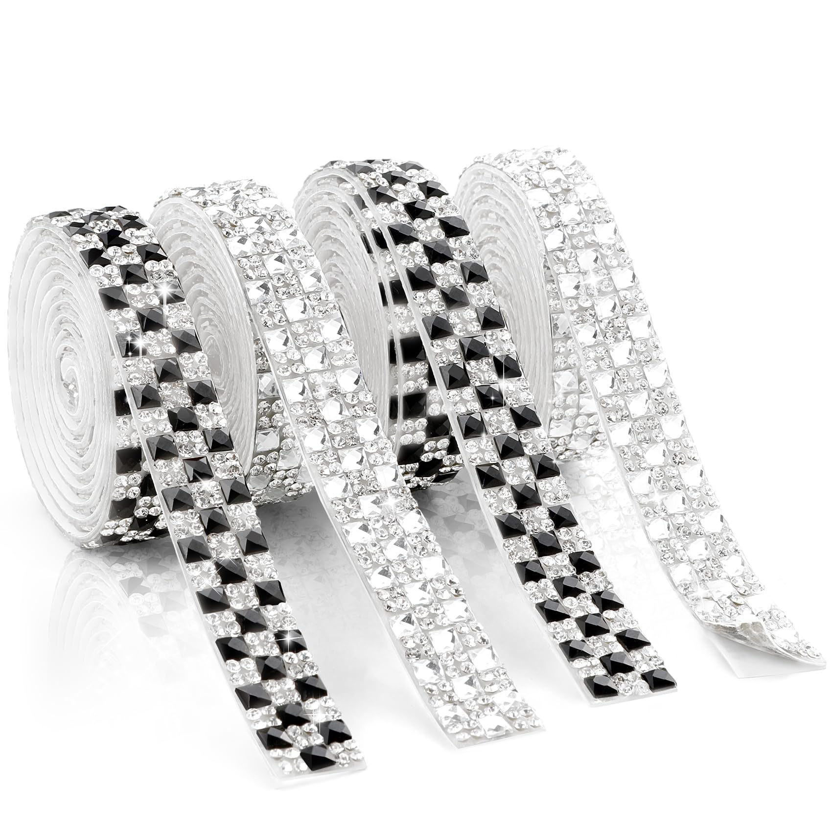 Cinta de diamantes de imitación, 4 yardas, tiras de diamantes de imitación autoadhesivas, 4 rollos de calcomanías de diamantes de